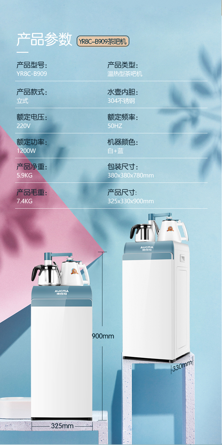 澳柯玛(AUCMA)家用立式饮水机双壶多功能养生龙门茶吧机 冷灰色 温热款YR5A-B920 自营