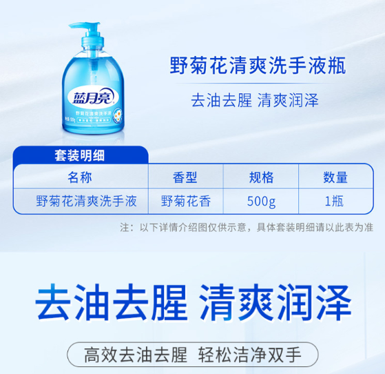 蓝月亮野菊花清爽洗手液500g/瓶 泡沫丰富 温和配方 去油去腥 厨房专用 自营