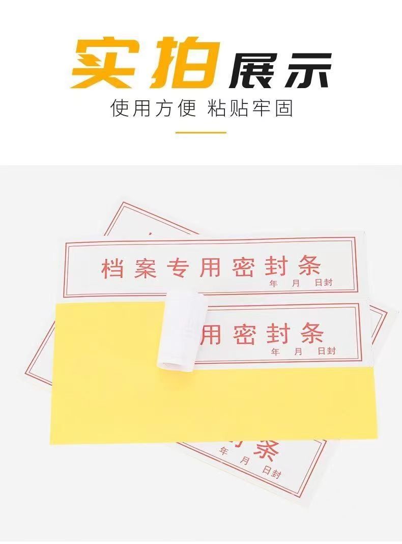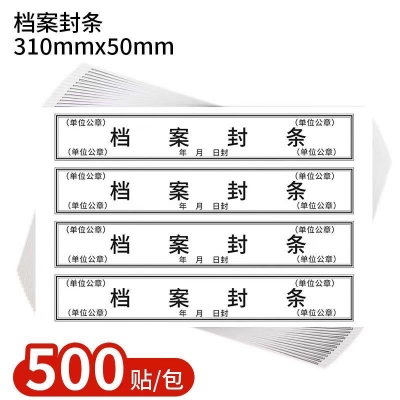 档案袋密封条贴投标文件封口不干胶标签档案封条纸人事档案密封条 500/包 销售单位:包 自营