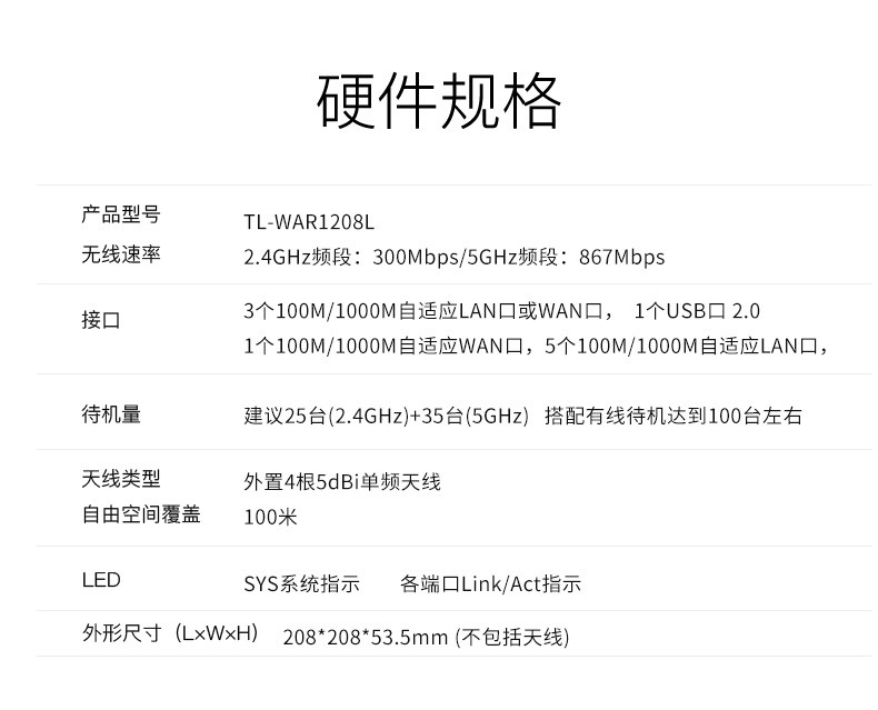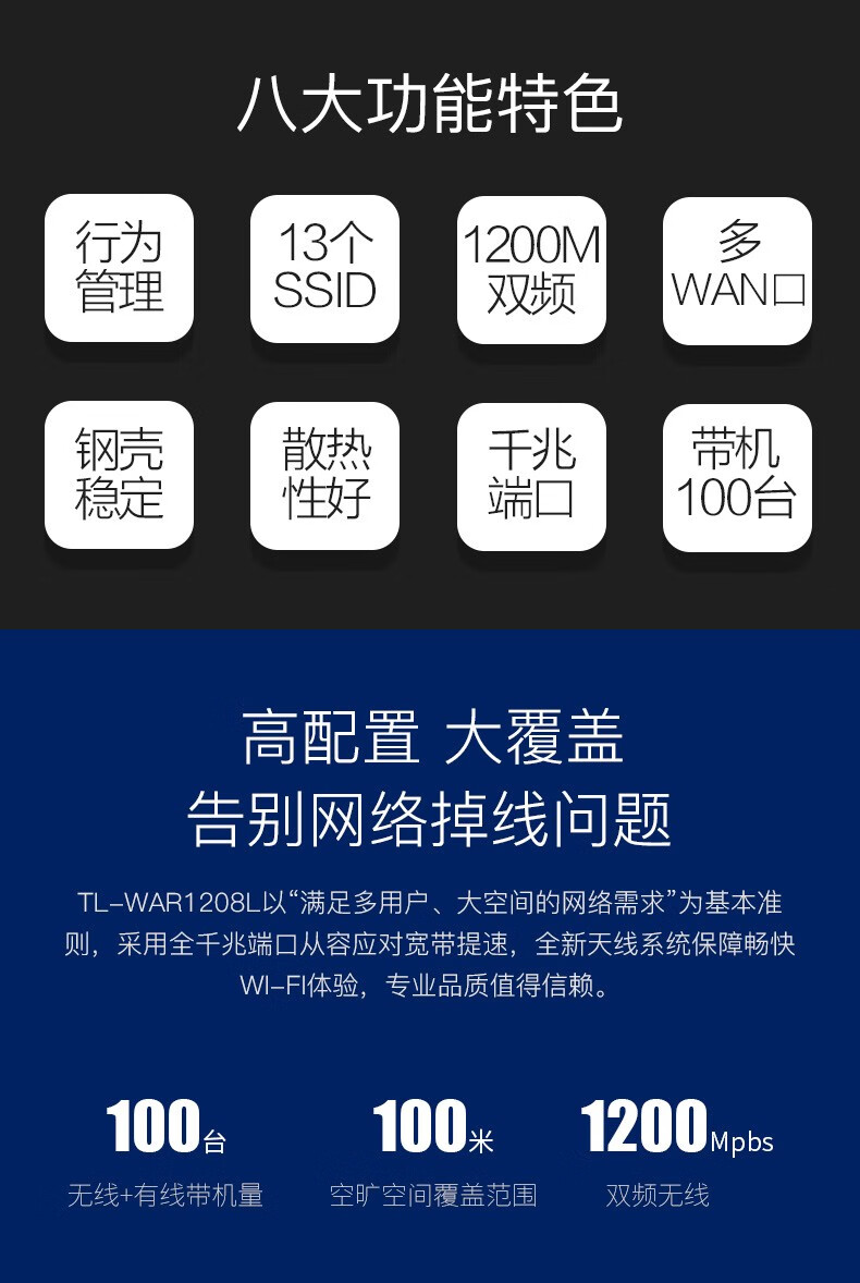 普联(TP-LINK) 企业级无线路由器双频千兆WIFI6多WAN口商用办公室大功率高速网关 TL-WAR1208L带机100双频1200M 自营