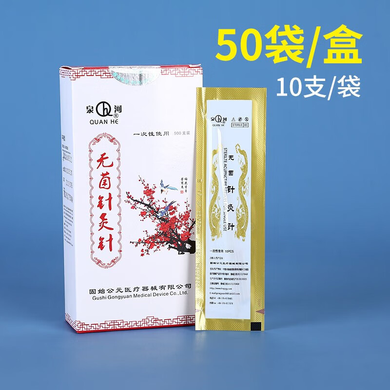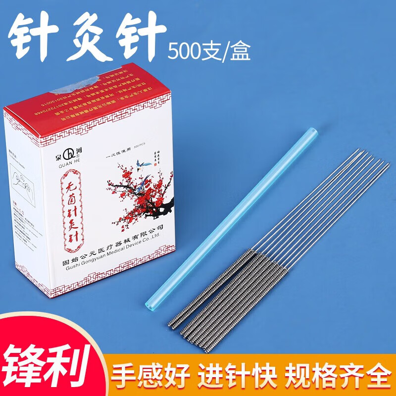 泉河 一次性无菌带套管针灸针家用 医用不锈钢材质 中医 针灸拔罐500支/盒 0.3*25mm 一寸 自营