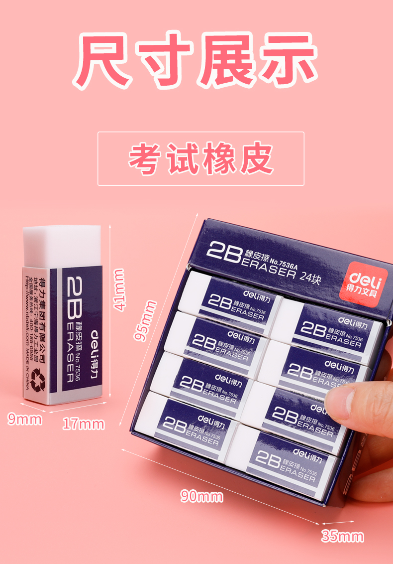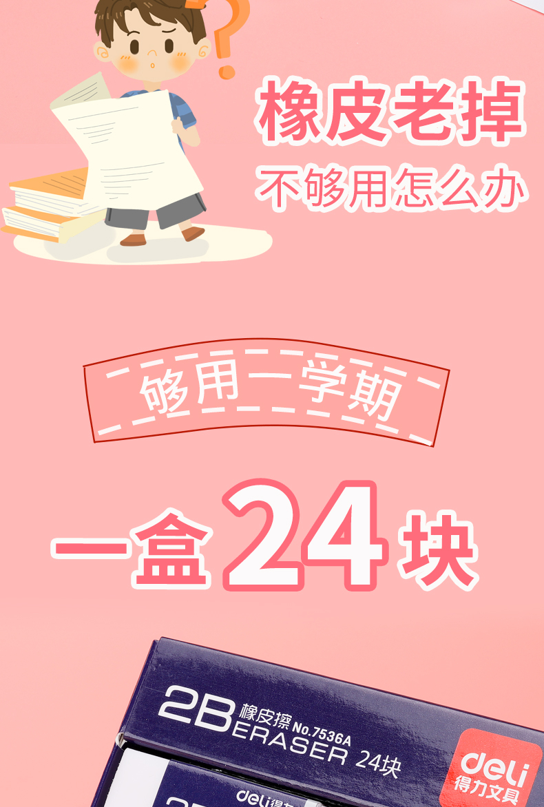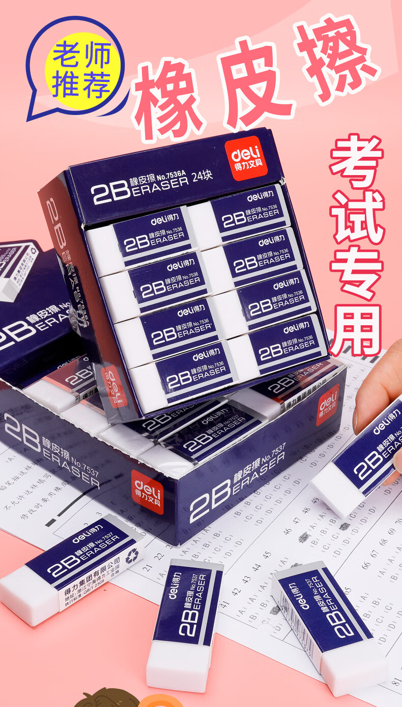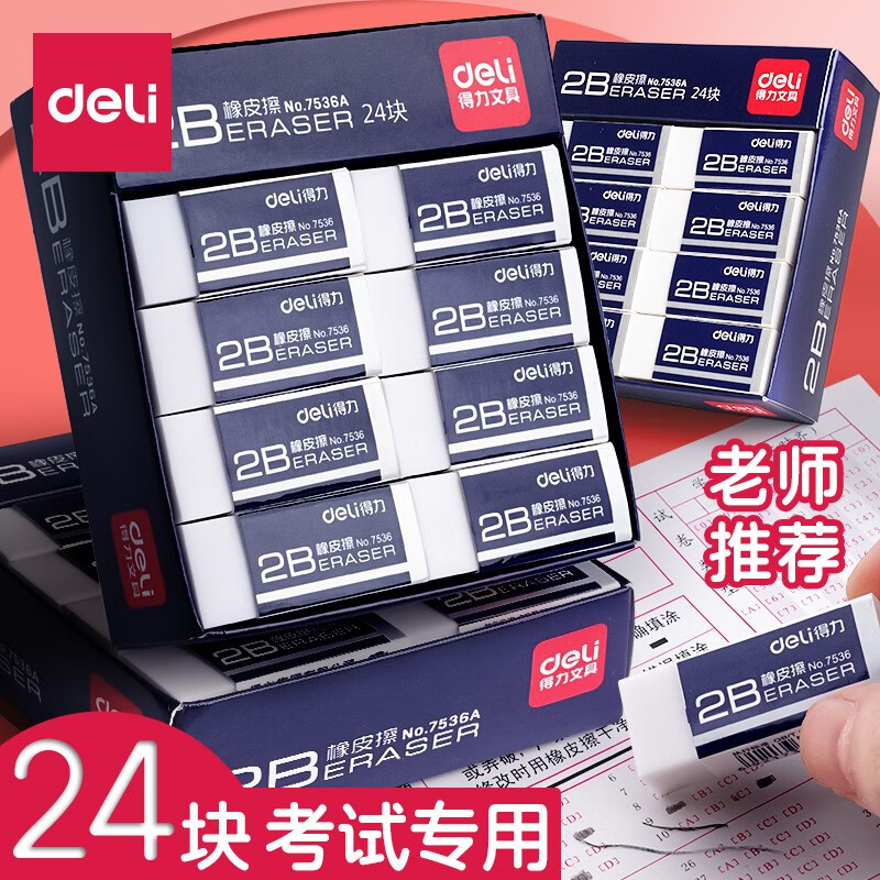 【24块】得力橡皮擦考试小学生专用2b铅笔橡皮檫 儿童创意卡通可爱少屑橡皮 学习文具用品批发 【小号】24块整盒装 7536A 自营