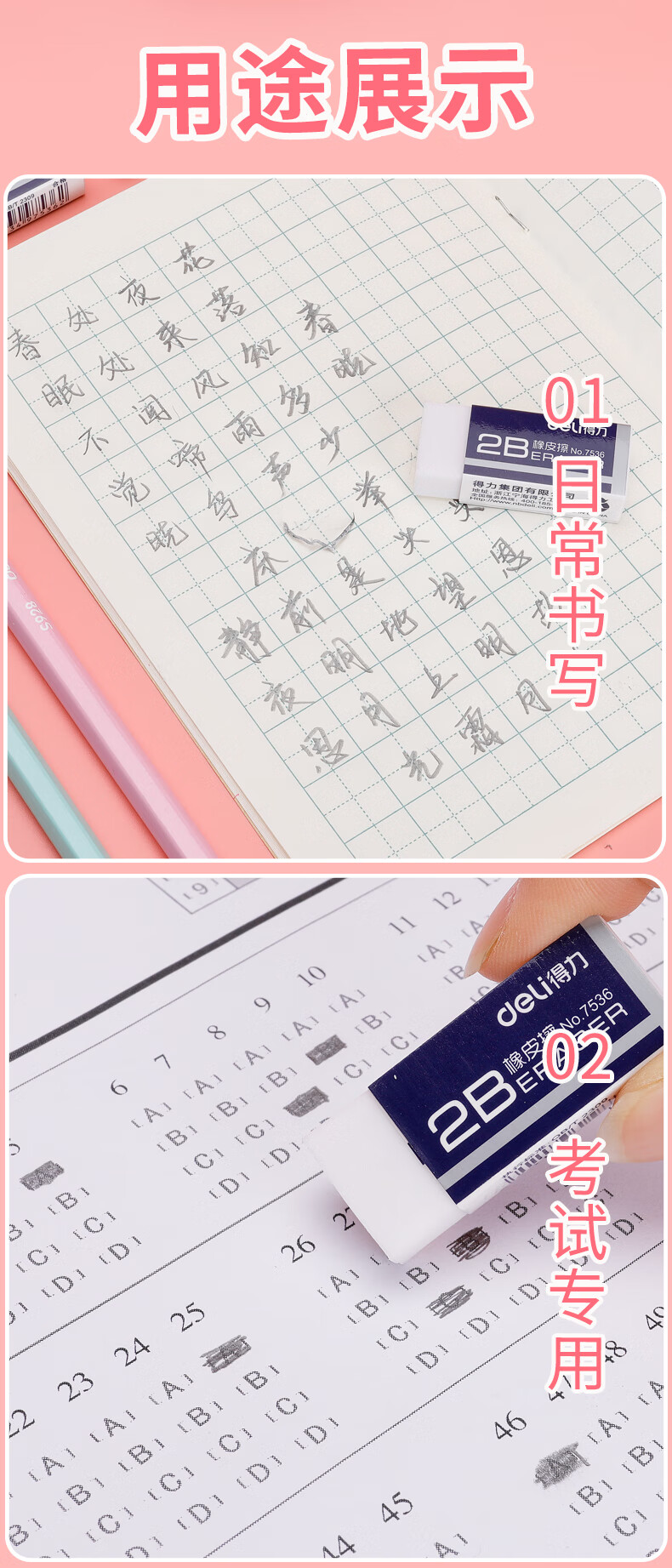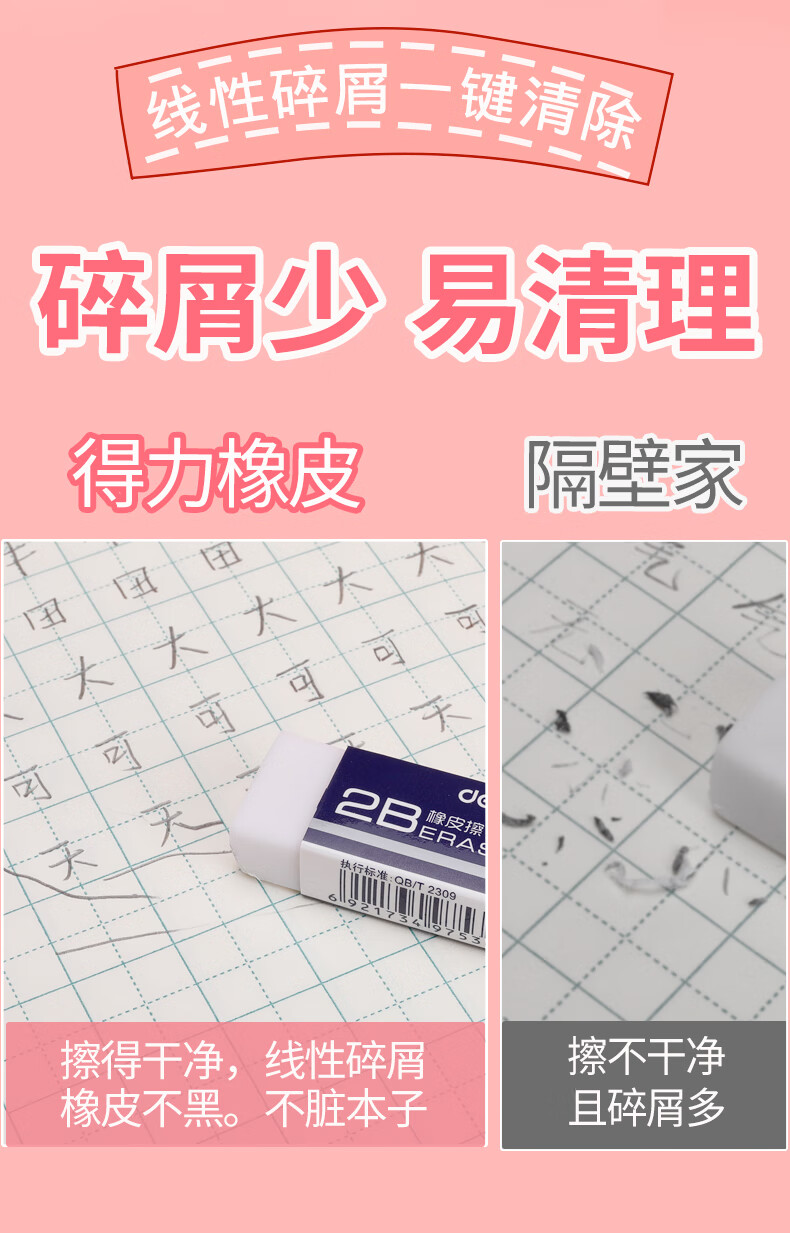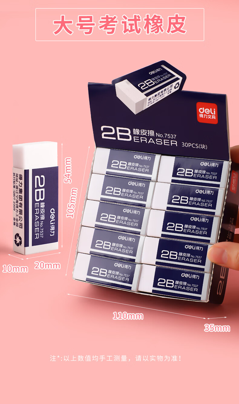 【24块】得力橡皮擦考试小学生专用2b铅笔橡皮檫 儿童创意卡通可爱少屑橡皮 学习文具用品批发 【小号】24块整盒装 7536A 自营