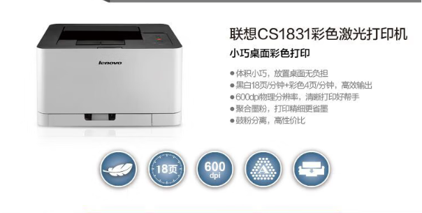 联想(Lenovo)CS1831 A4彩色激光打印机 办公商用家用彩色打印 鼓粉分离 USB打印 自营
