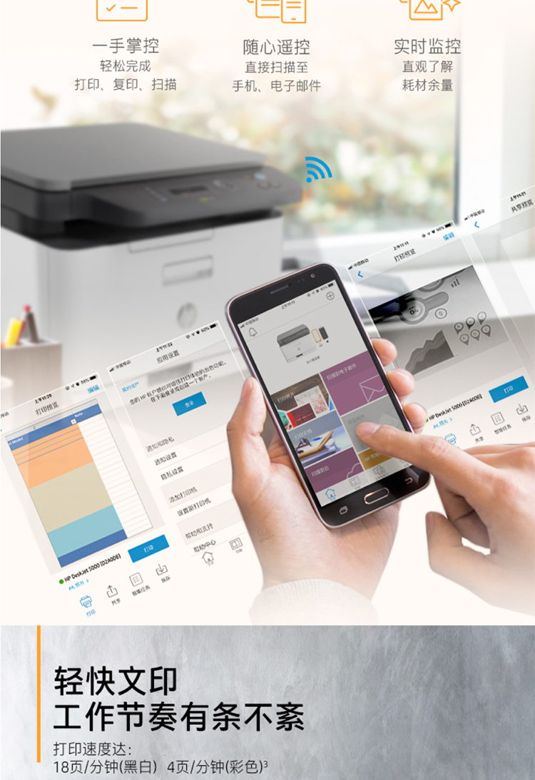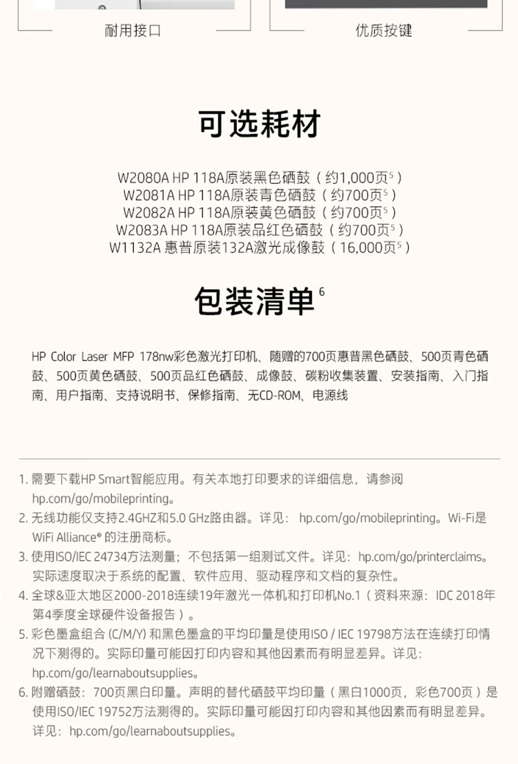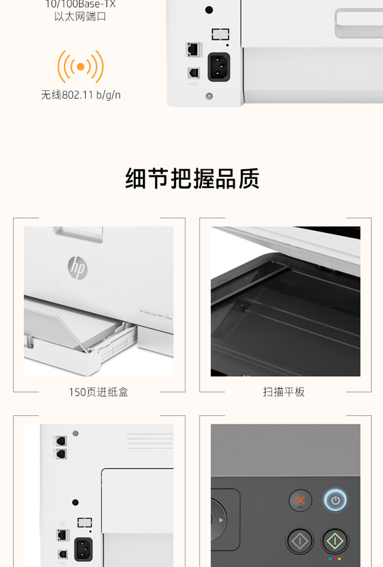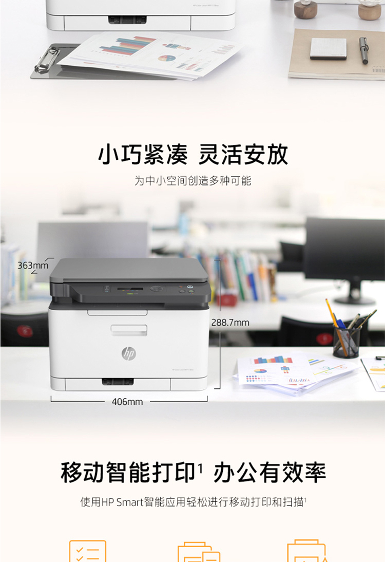 惠普(HP)178nw A4锐系列彩色激光多功能一体机(无线打印 复印 扫描 )无线连接 自营