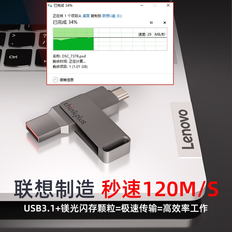 联想(lenovo) U盘usb 3.2高速闪存type-c手机电脑两用双接口大容量优盘双头 联想(Lenovo) USB 3.2 高速U盘 银 64GB 自营