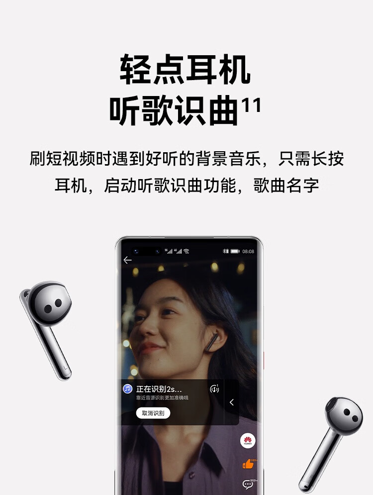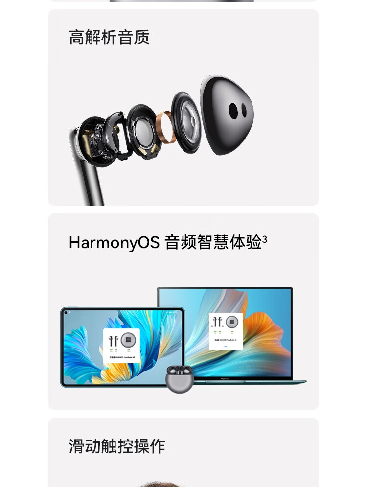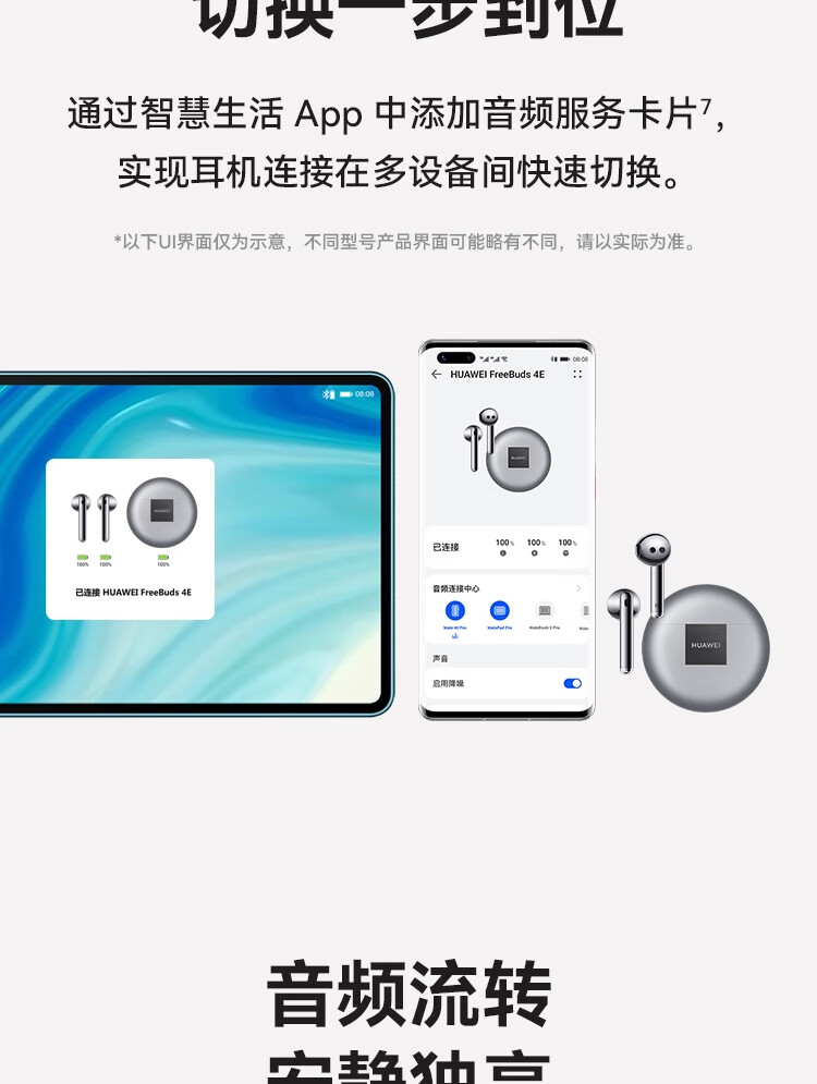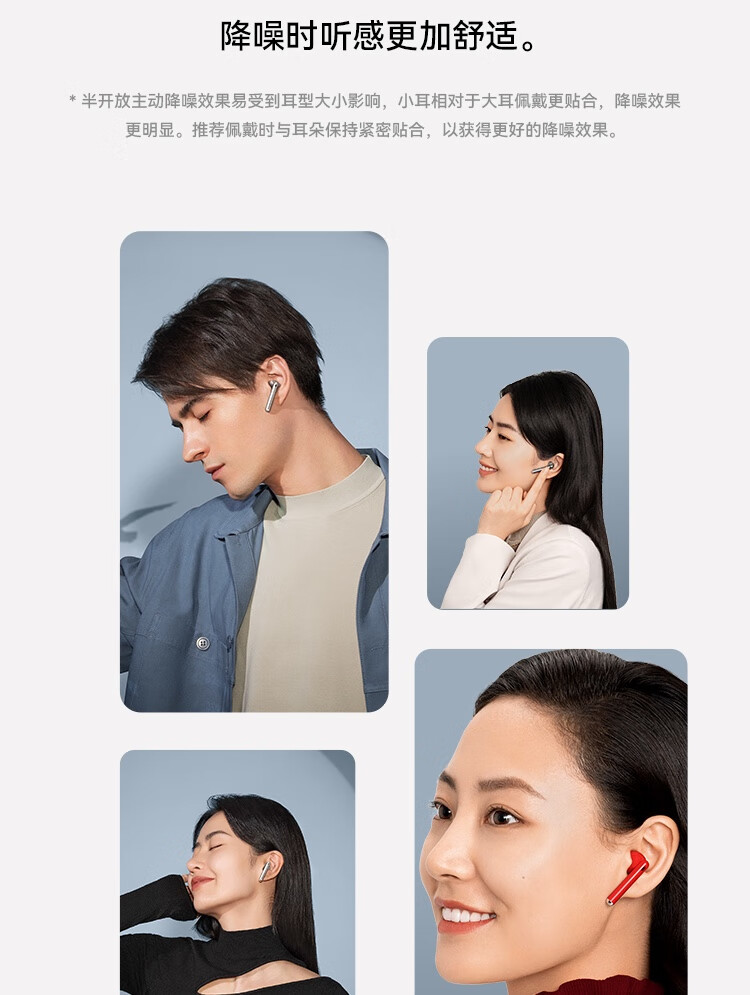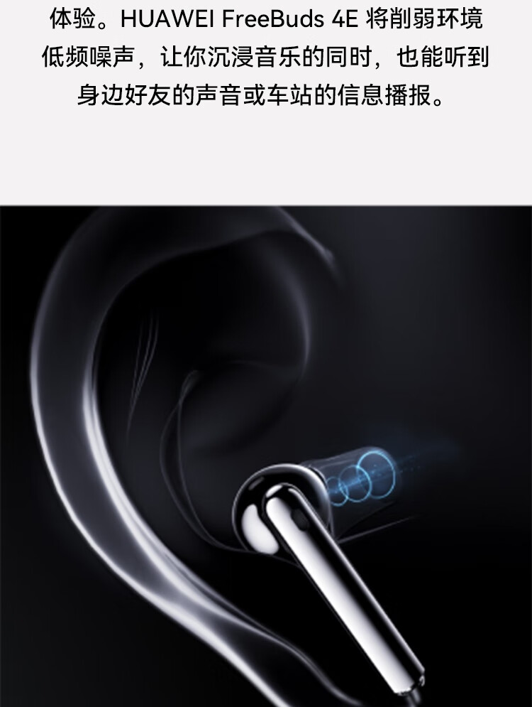 华为HUAWEI FreeBuds 4E 真无线蓝牙耳机 主动降噪半开放入耳式耳机 高解析音质有线充版 冰霜银 自营