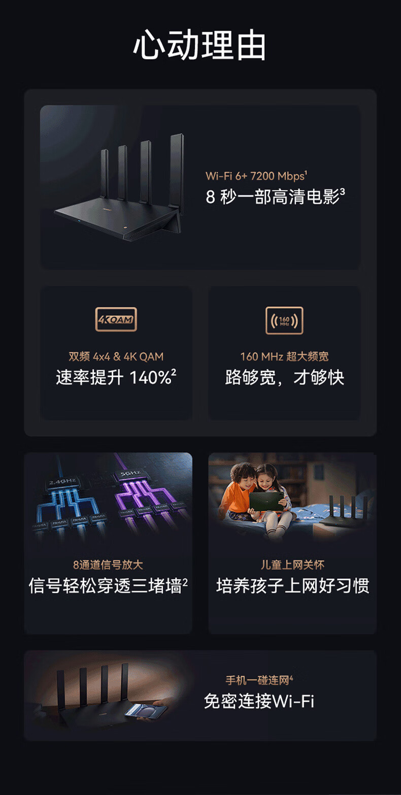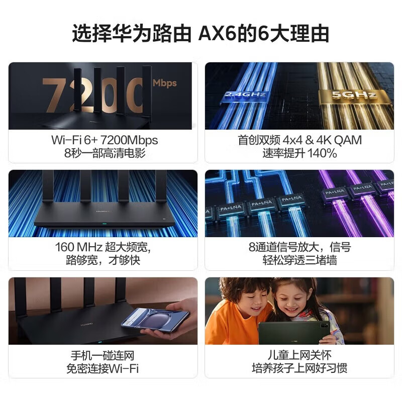 华为路由器 智能设备 华为路由AX6 7200Mbps Wi-Fi6 自营