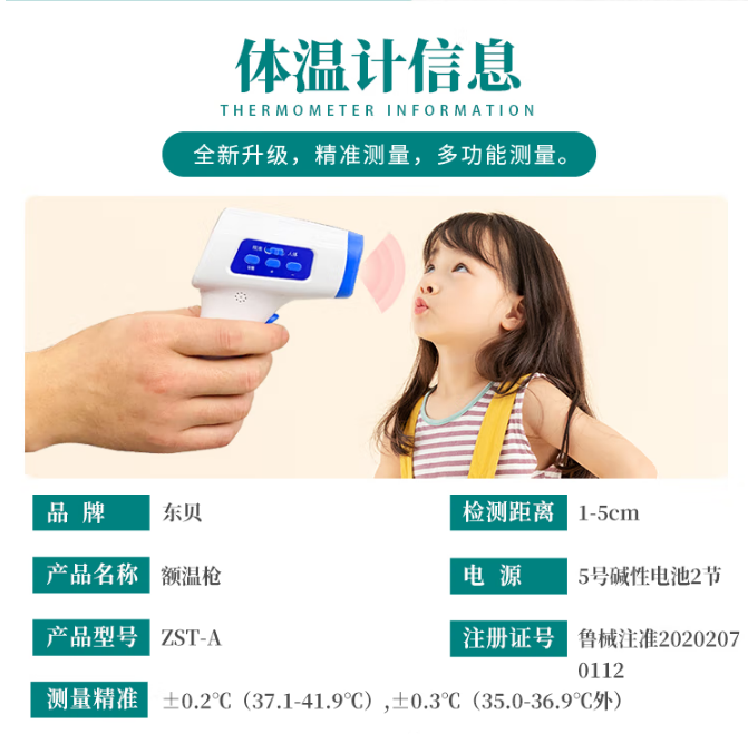 东贝 体温枪医用额温枪婴幼儿家用电子体温计红外测温枪 自营
