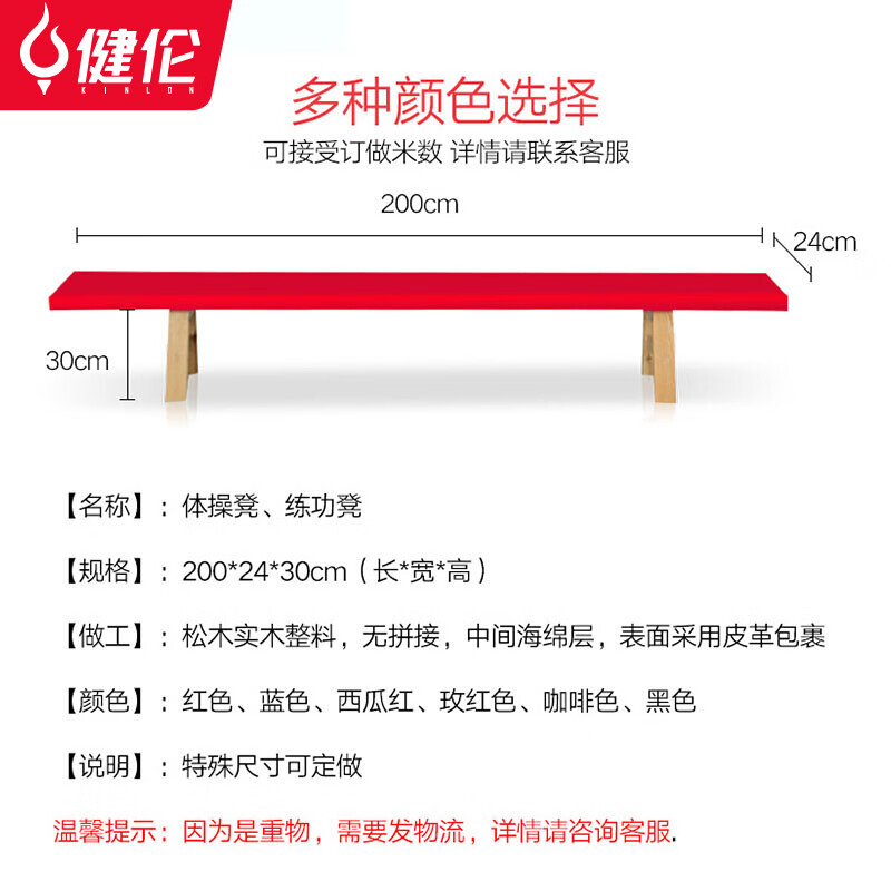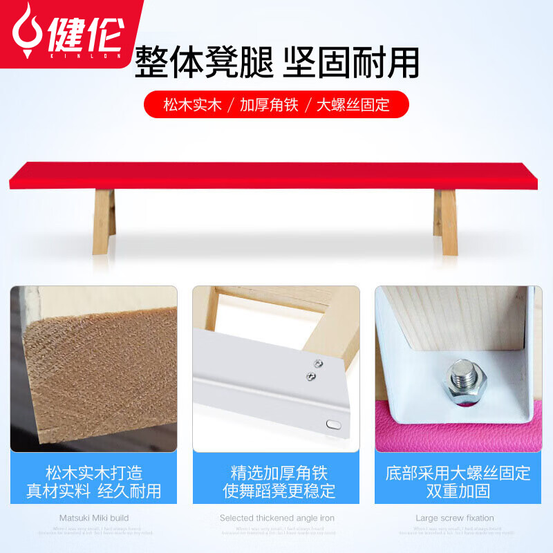 健伦(JEEANLEAN) 体操凳家用舞蹈凳专业练功凳比赛专用平衡凳实木压腿长凳子耗腿大板凳 玫红色 200*24*30cm 自营