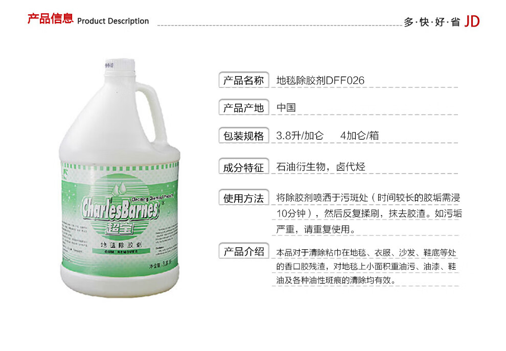 超宝(CHAOBAO)清洁剂 地毯除胶剂3.8L 自营
