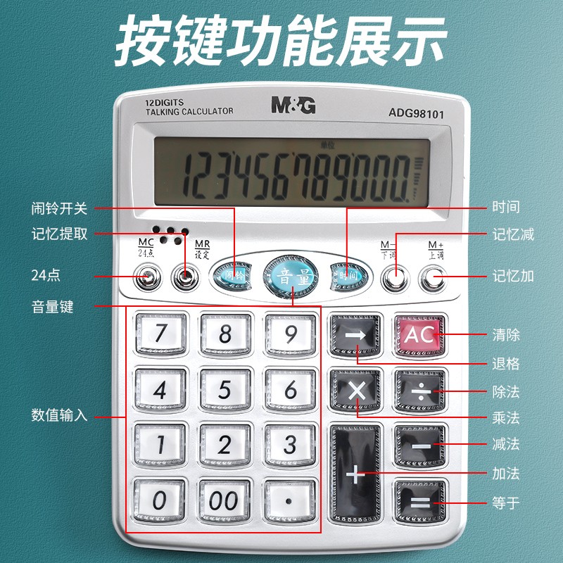 晨光 计算器带语音款商用中号带声音大屏幕大按键店铺财务记计算机器会计专用学生办公用品多功能 ADG98101 自营