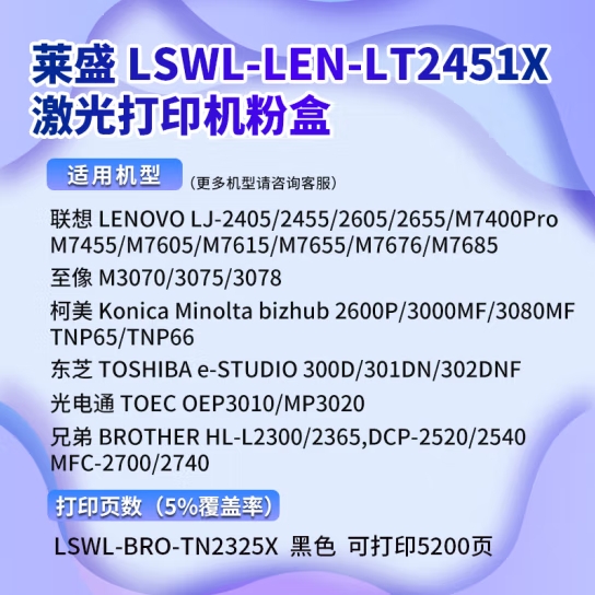 莱盛LT2451大容量粉盒 适用联想LJ2405 2455 2605 2655 M7400Pro M7455 7605 7615 7655 7676 7685打印机硒鼓 自营