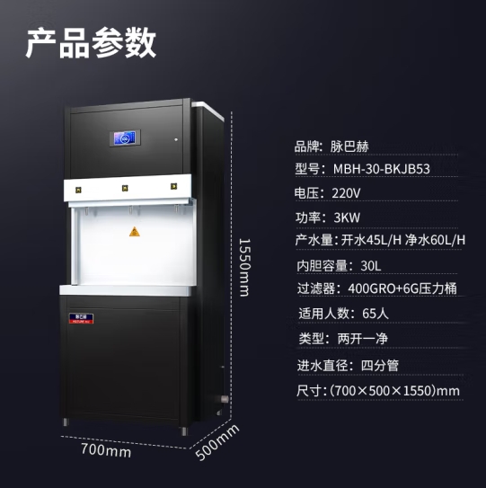 脉巴赫 商用净水器 直饮水机不锈钢五级过滤RO反渗透商用净水机饮水机一体机 MBH-30-BKJB53【两开一净】 自营