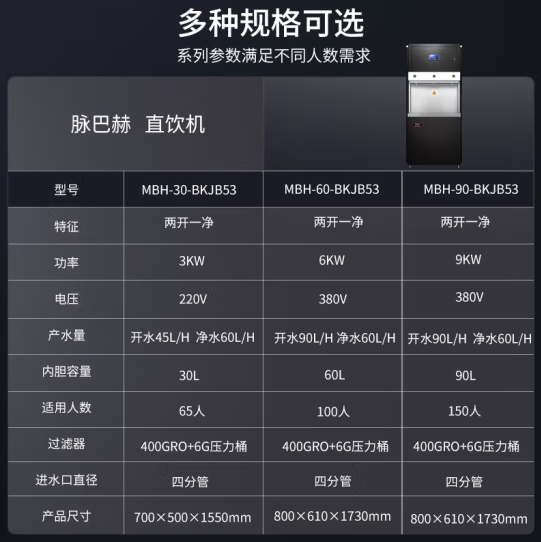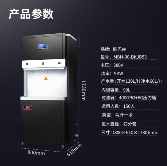 脉巴赫 商用净水器 直饮水机不锈钢五级过滤RO反渗透商用净水机饮水机一体机 MBH-90-BKJB53【两开一净】 自营