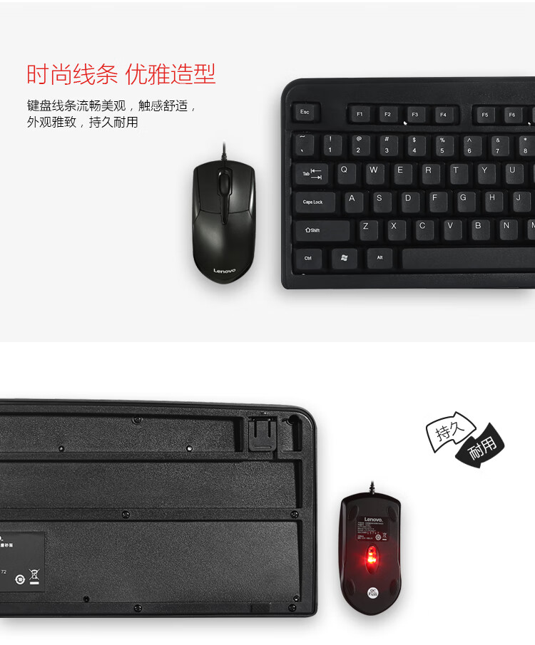 联想(Lenovo)KM4800S 有线键盘鼠标套装 办公鼠标键盘套装 自营
