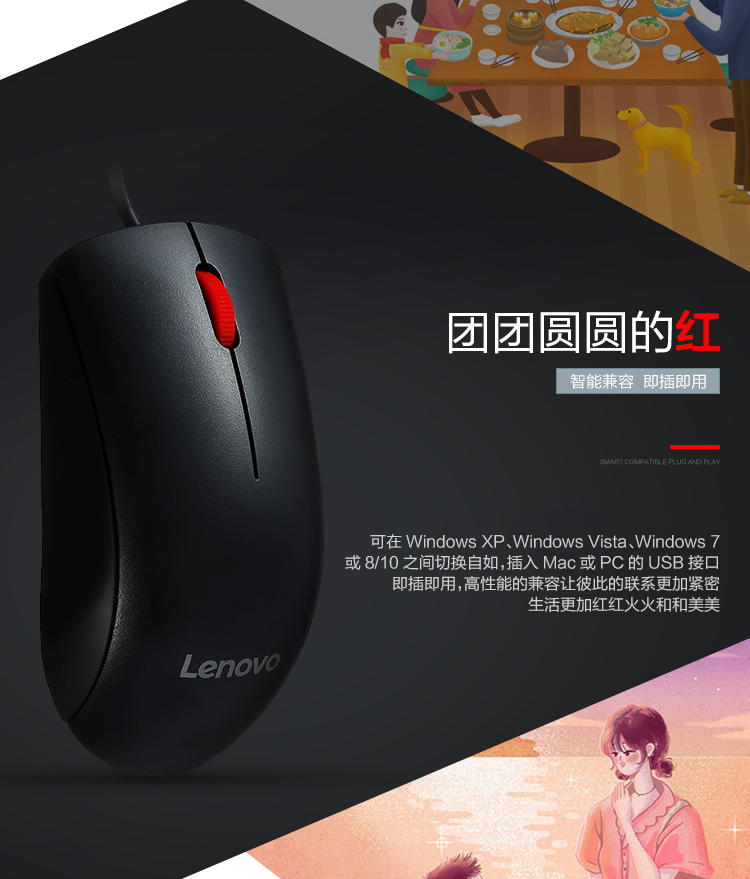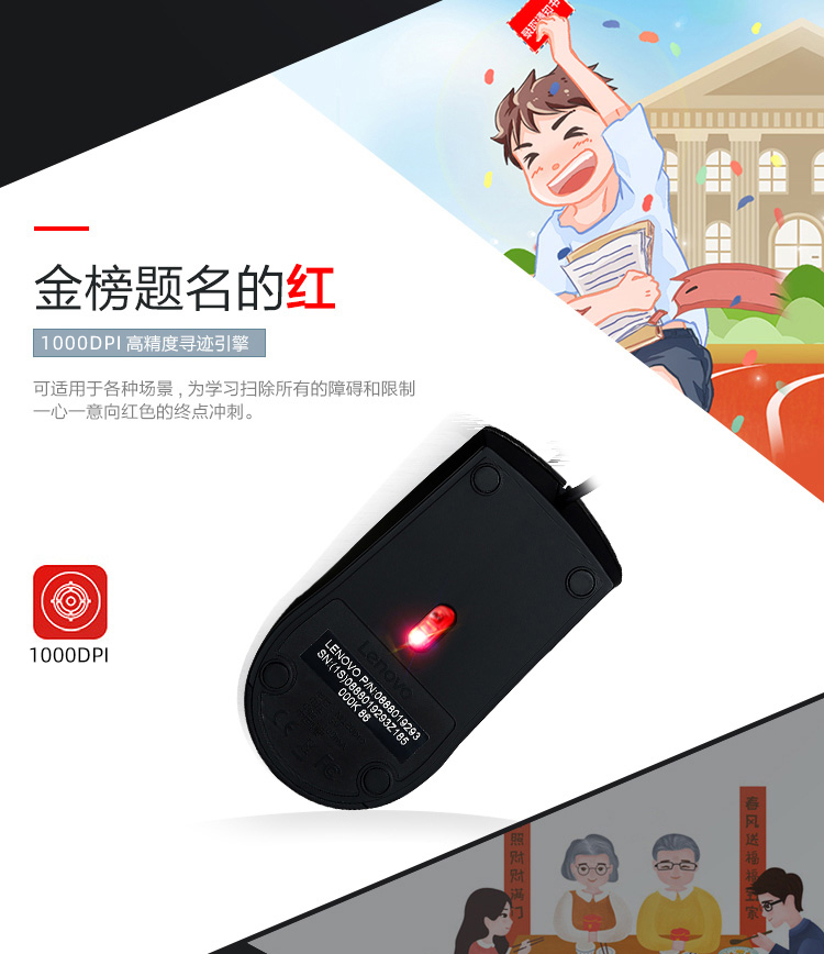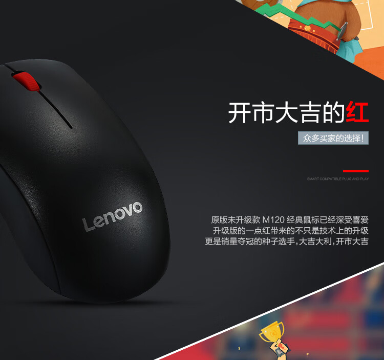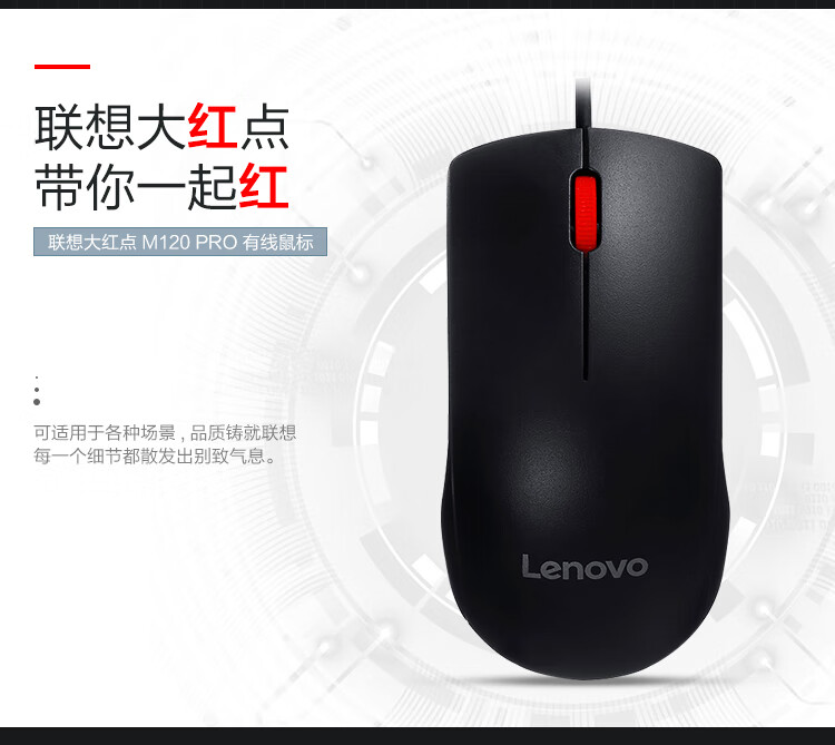 联想(Lenovo)M120Pro 有线鼠标 办公鼠标 大红点有线鼠标 笔记本台式机鼠标 自营