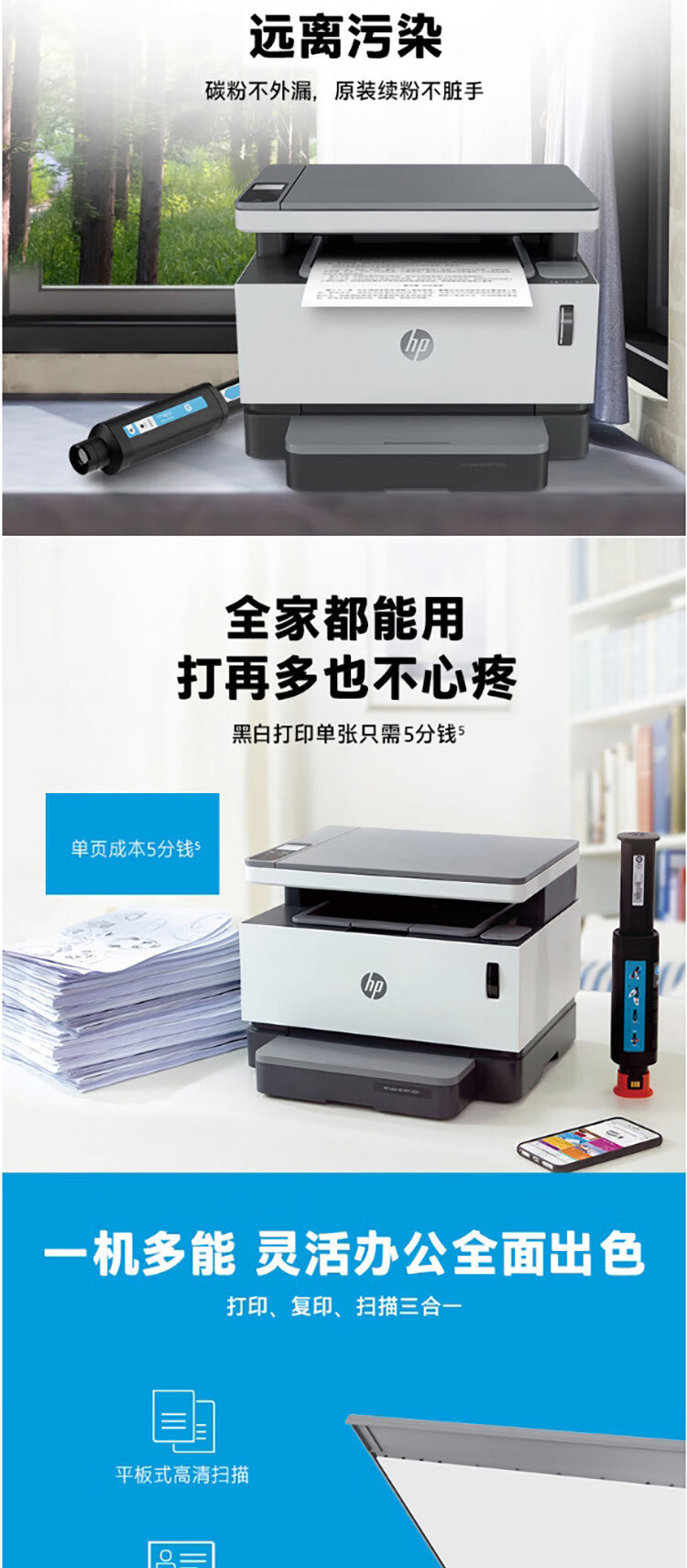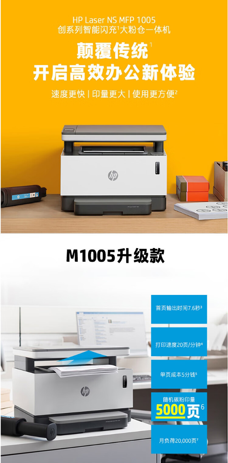 惠普(HP)Laser NS MFP 1005 多功能一体机 打印复印扫描 M1005升级款 创系列单打成本5分钱 自营