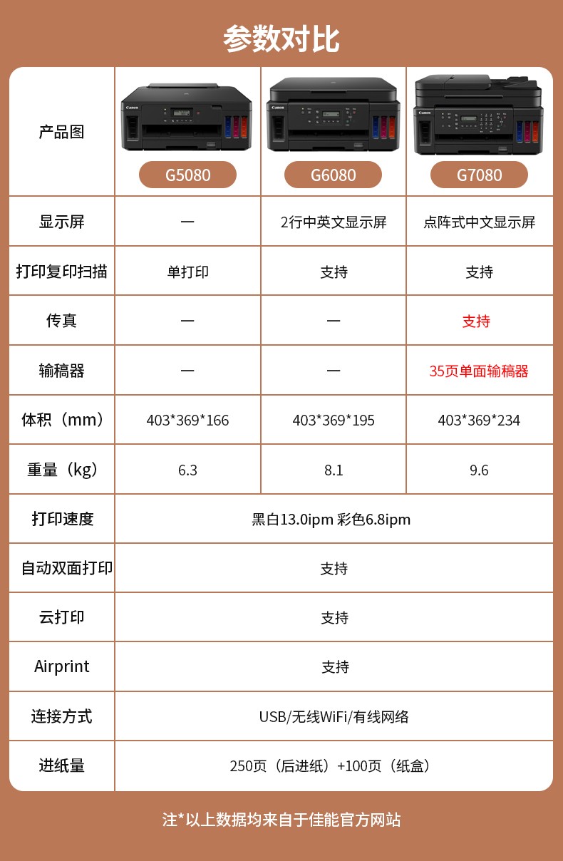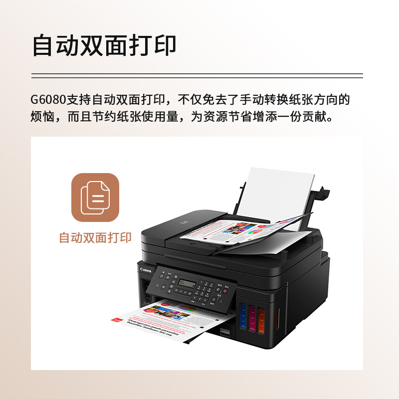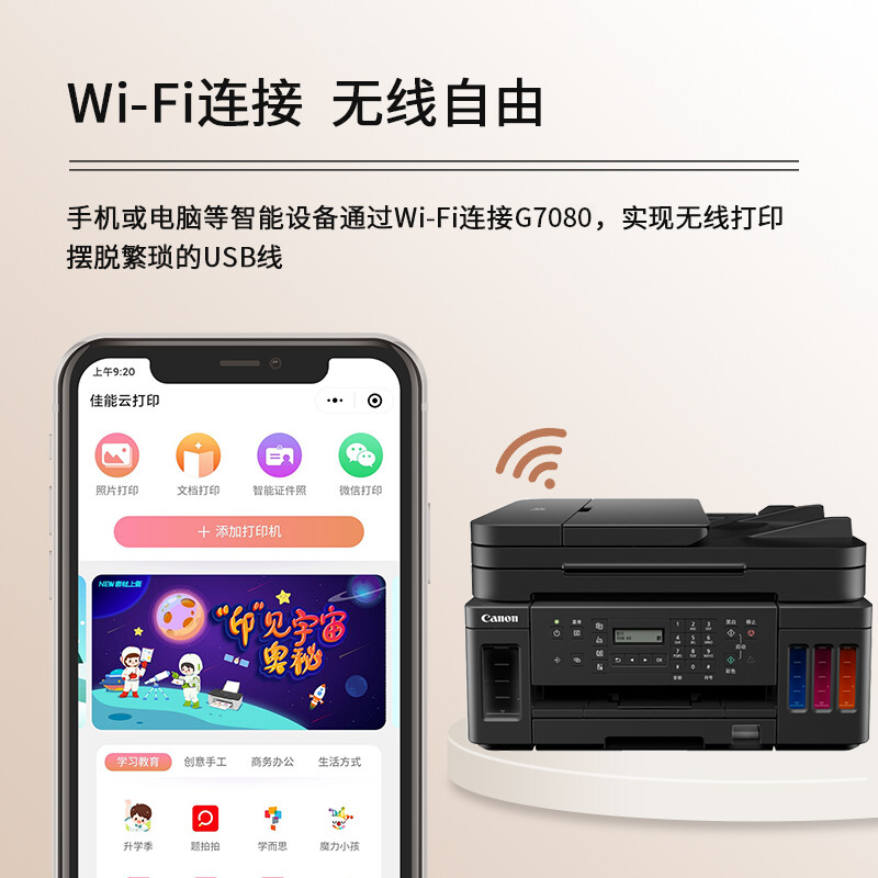 佳能(Canon) G6080/5080/7080自动双面原装连供无线照片文档家用办公复印扫描一体机 G7080(自动双面打印/连续复印扫描传真) 自营