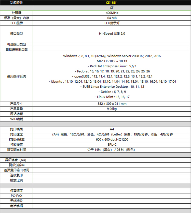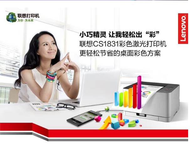 联想(Lenovo)CS1831 A4彩色激光打印机 办公商用家用彩色打印 鼓粉分离 USB打印 自营