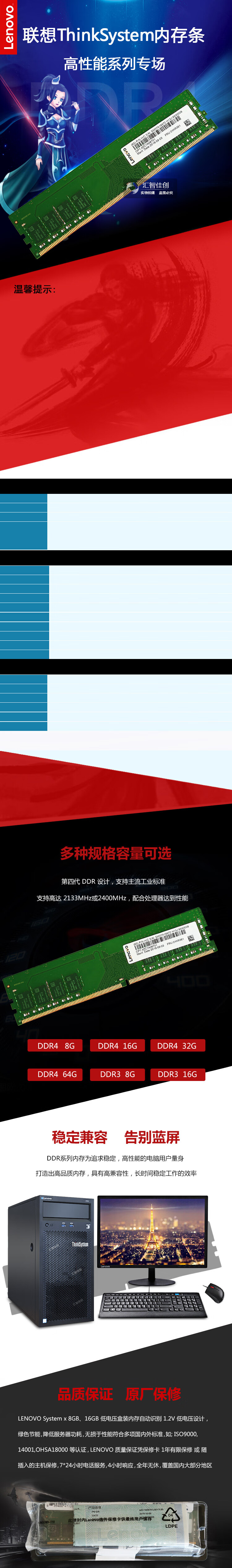 联想(Lenovo)ThinkSystem系列服务器内存 32GB DDR4-2933 RDIMM 自营