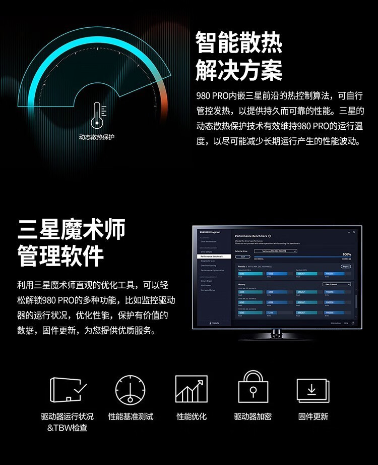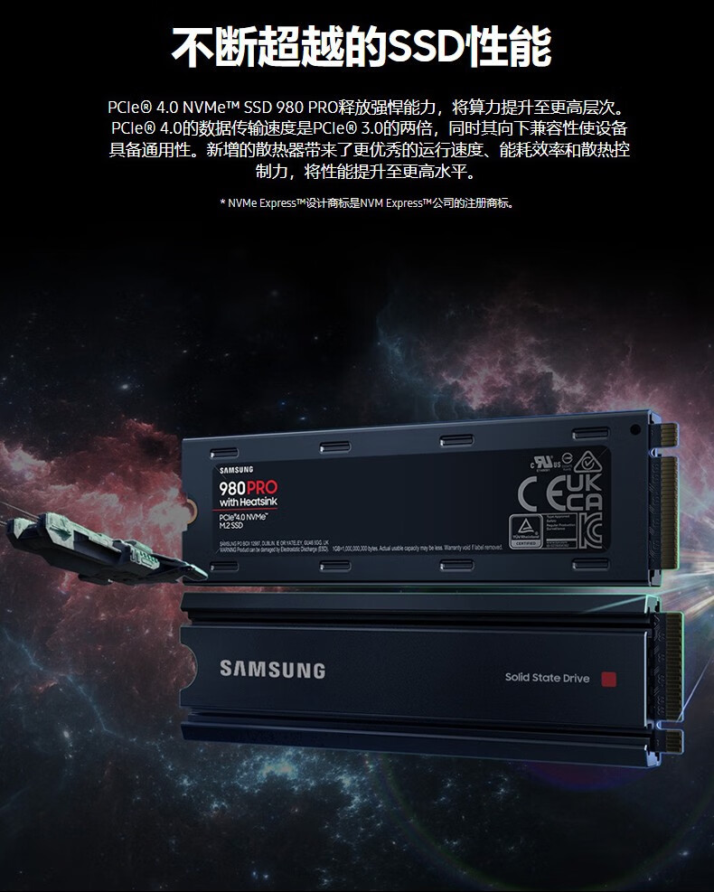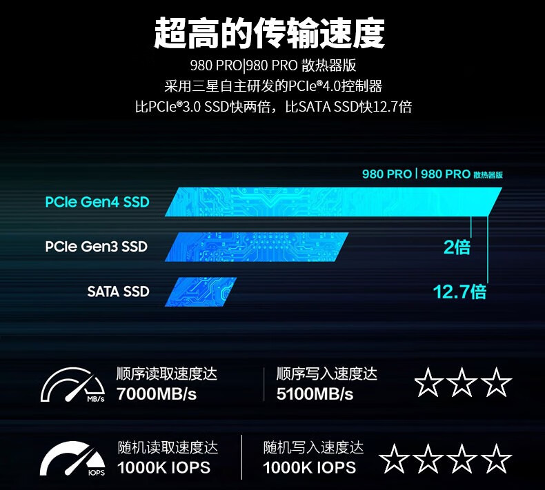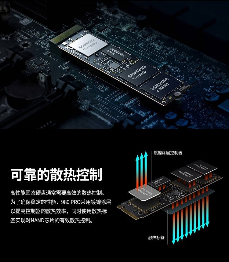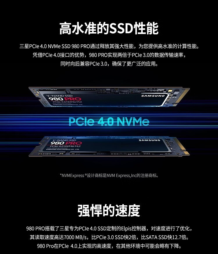 三星(SAMSUNG) 980 PRO SSD固态硬盘M.2接口NVMe台式机/笔记本固态硬盘m2 980PRO 1TB|NVMe PCIe 4.0 自营