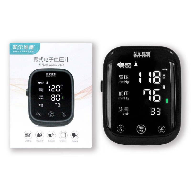 凯尔维德 臂式电子血压计 AES-U132 智能量血压上臂式测血压仪器黑色款 单台装 自营
