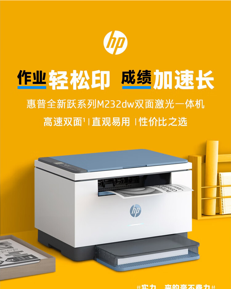 惠普(HP)M232dw 多功能激光一体机 打印复印扫描 自动双面打印+无线 蓝灰色 自营
