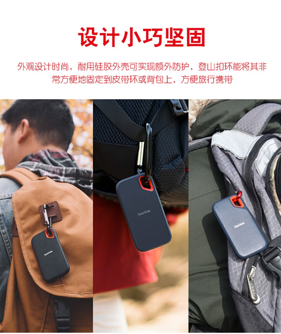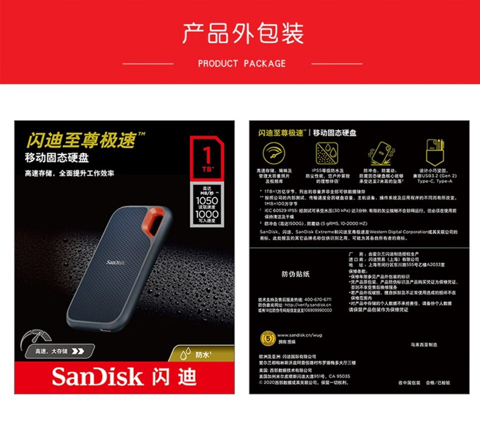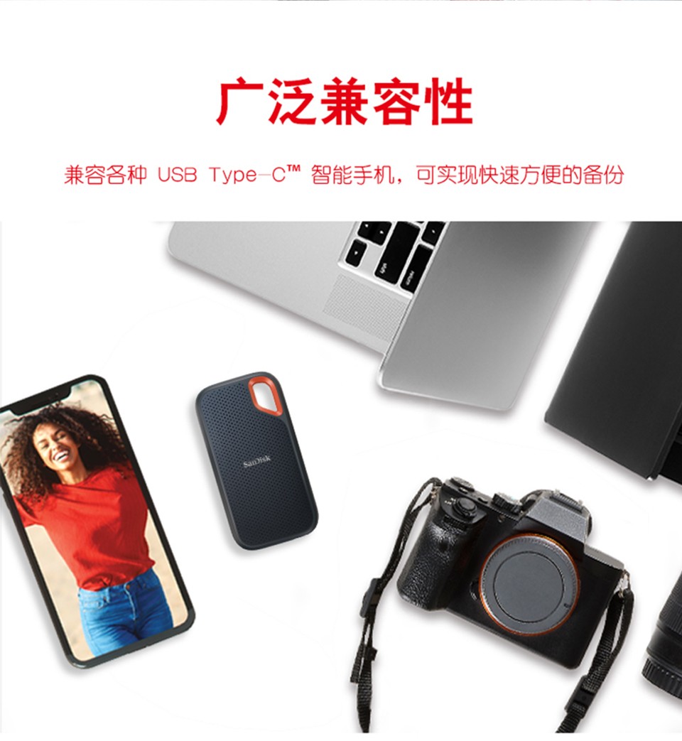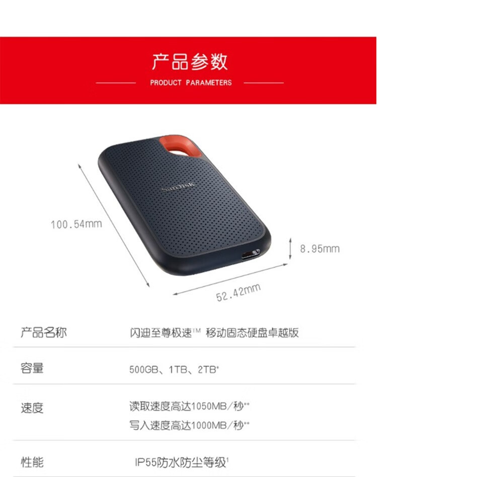 闪迪(SanDisk) 移动固态硬盘 NVME高速SSD E61存储USB3.2 至尊极速 500G 读速高达1050MB/S 套装 自营