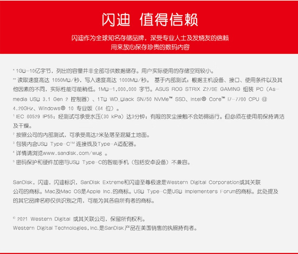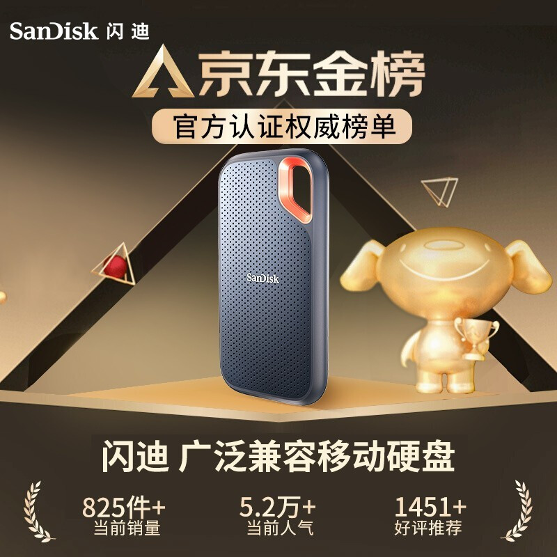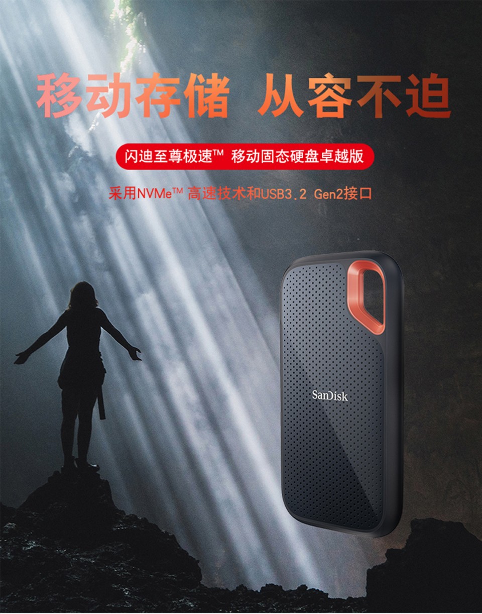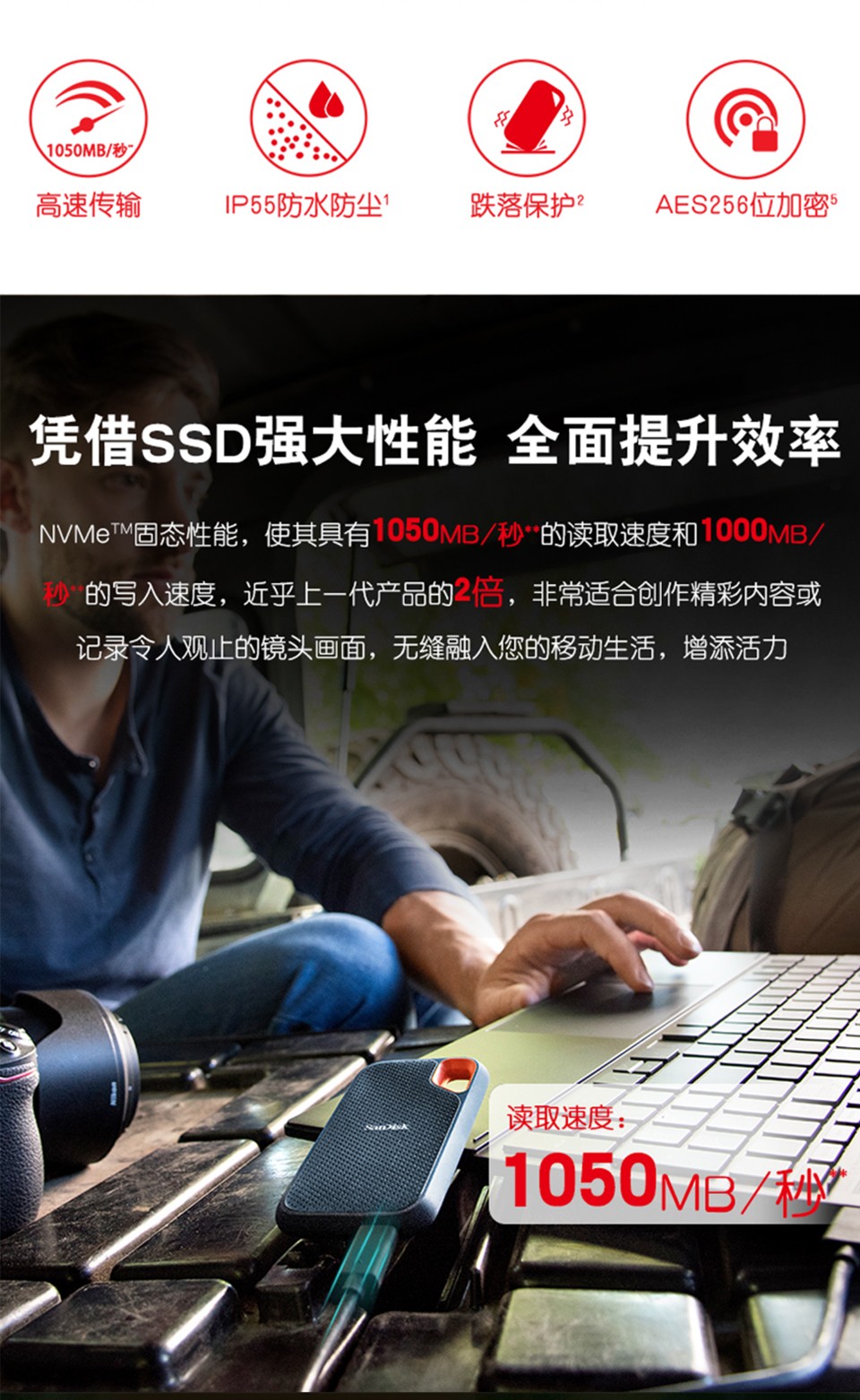闪迪(SanDisk) 移动固态硬盘 NVME高速SSD E61存储USB3.2 至尊极速 500G 读速高达1050MB/S 套装 自营