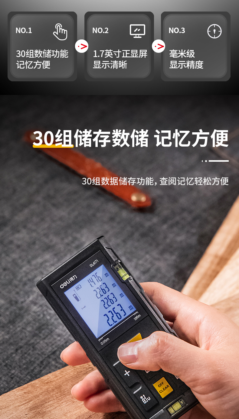 得力(deli) 手持式激光测距仪高精度电子尺红外量房仪100米 卷尺 DL4171 自营