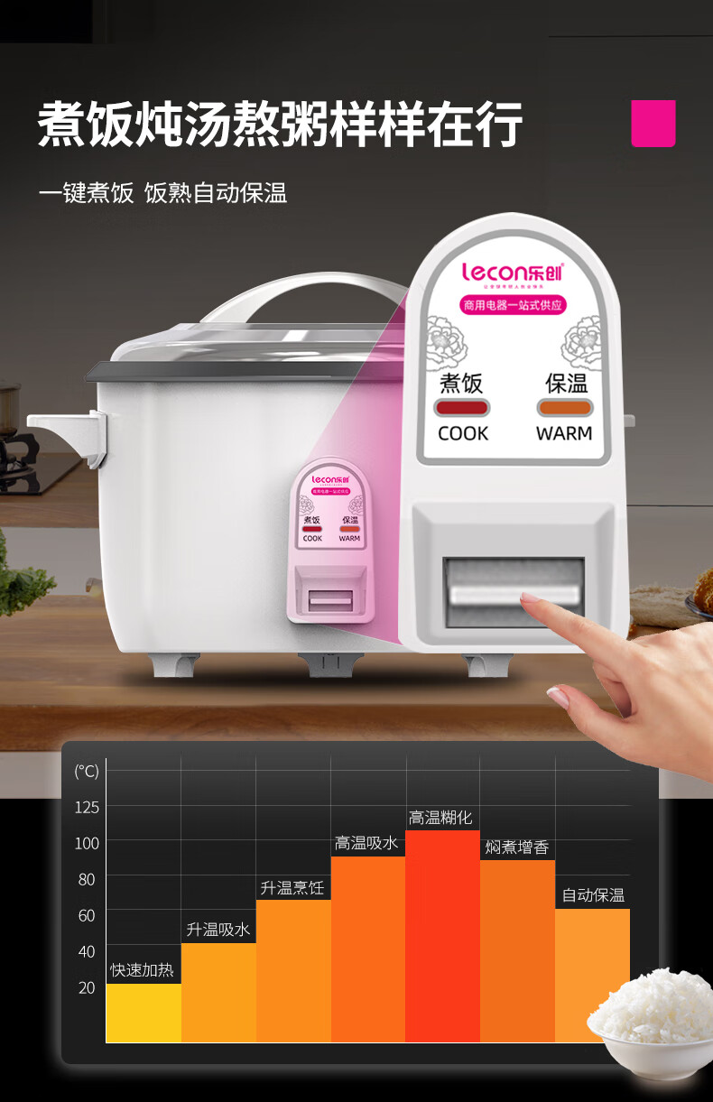 乐创 lecon商用电饭煲特大号电饭锅食堂饭店保温蒸饭锅老式大容量家用 23升/不粘内胆/30-40人用/约9斤米 自营