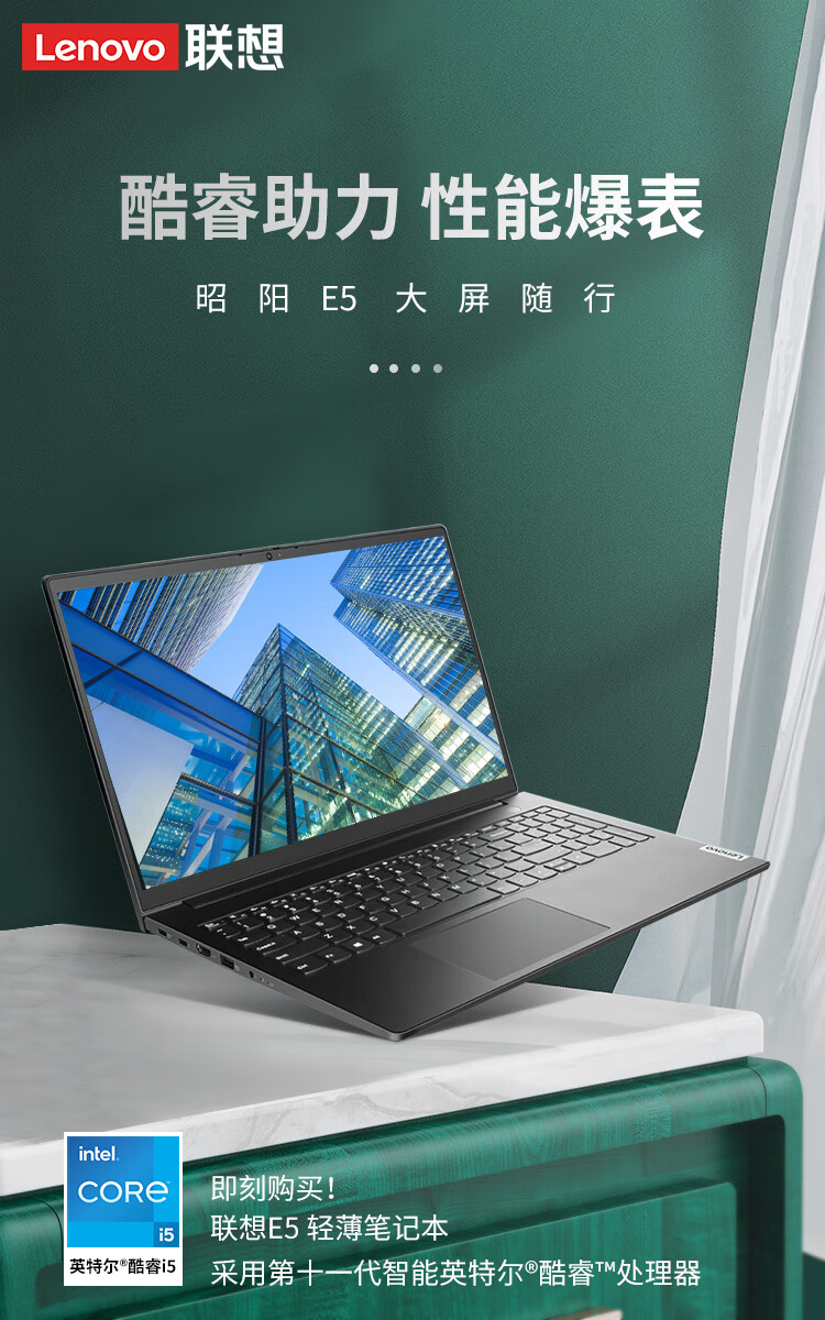 联想(Lenovo)笔记本电脑昭阳E5 11代酷睿i5i7高性能游戏设计学生轻薄本15.6英寸商务办公手提本 i5-1155G7 8G 512G固态丨便携 游戏级独显 升级款 黑 自营