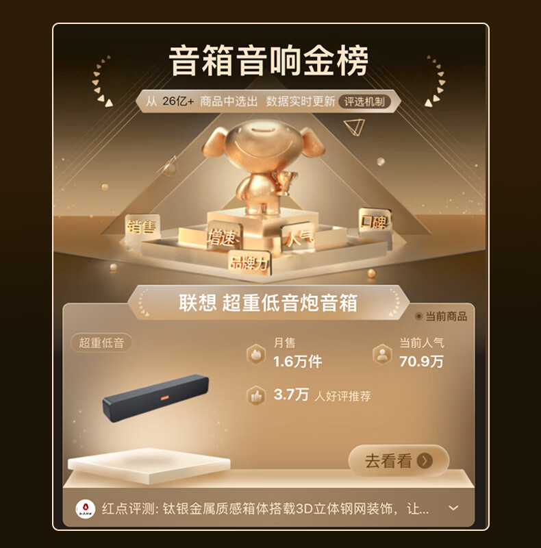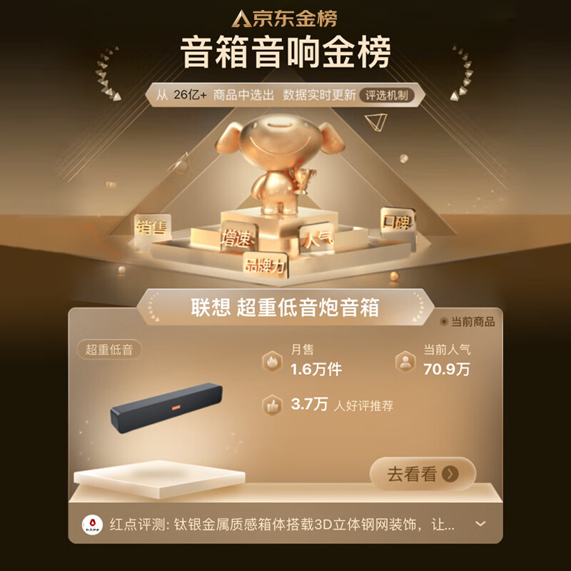 联想(Lenovo) 电脑音响音箱 家用桌面台式机超重低音炮 网课音响 自营