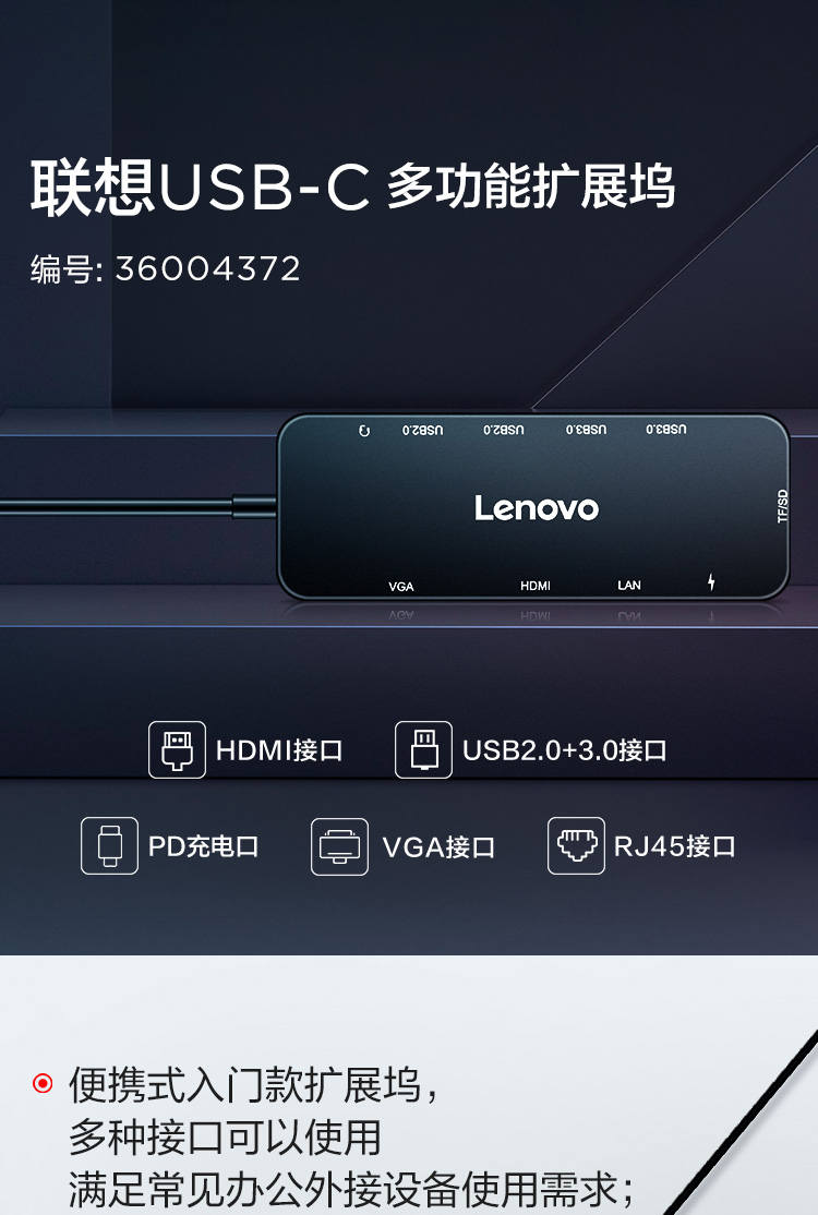 联想(lenovo)USB-C 多功能扩展坞 036004372 自营