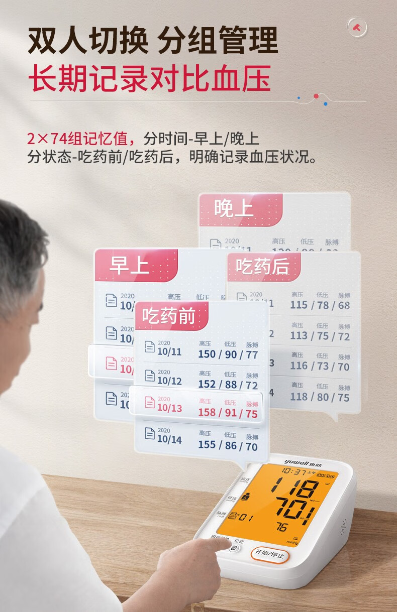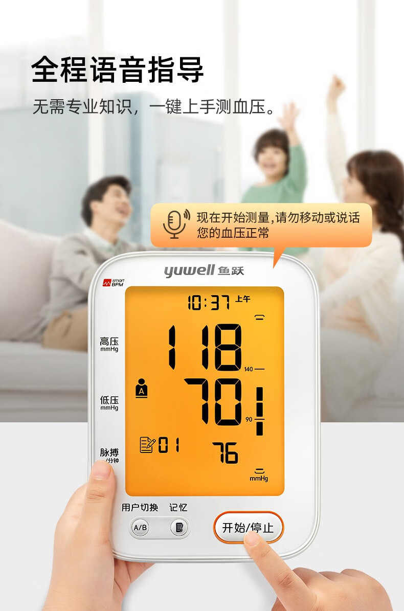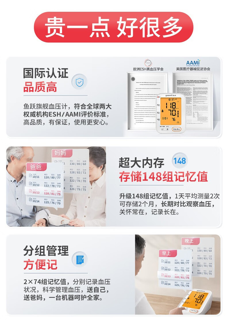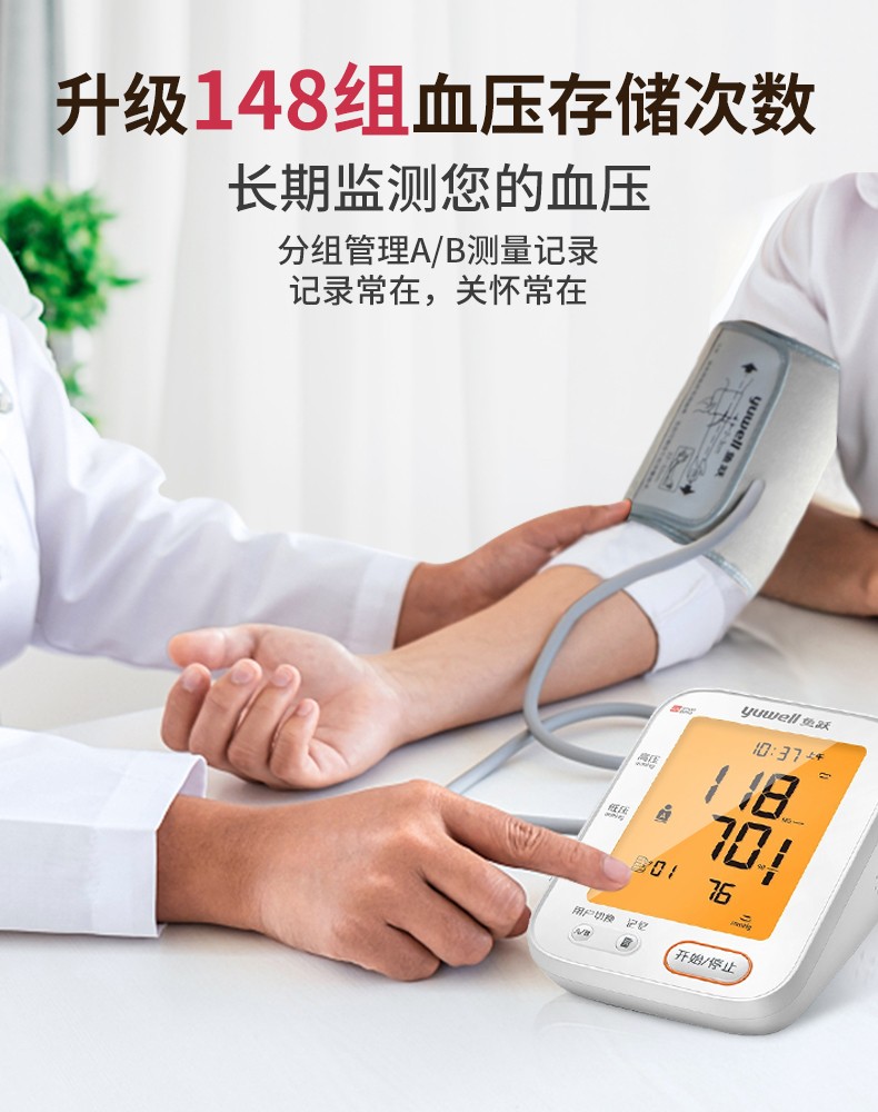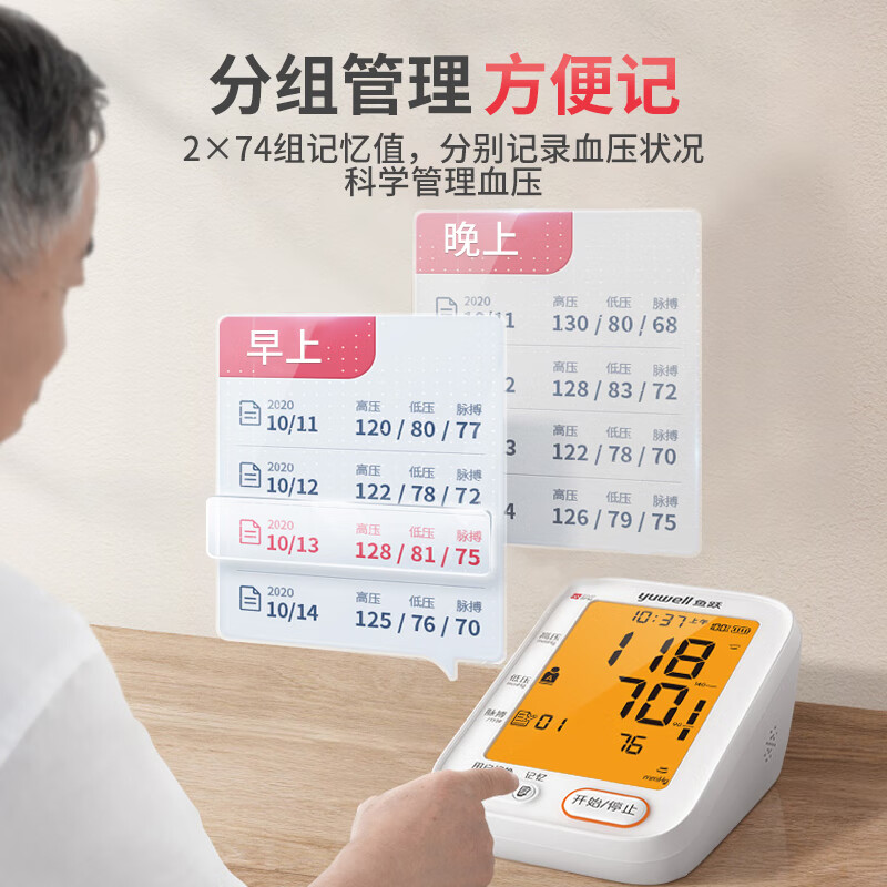 【高端医院款准】鱼跃(YUWELL)高精准电子血压计血压仪家用医用量血压器上臂式充电款全自动测量仪表 医院款+360臂带+语音背光+充电+双人切换+电源 自营