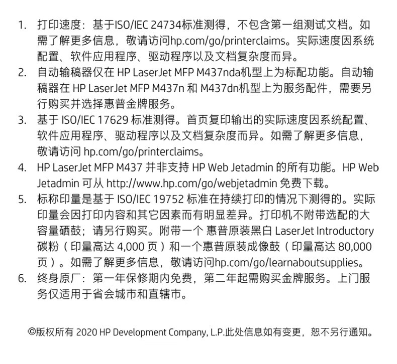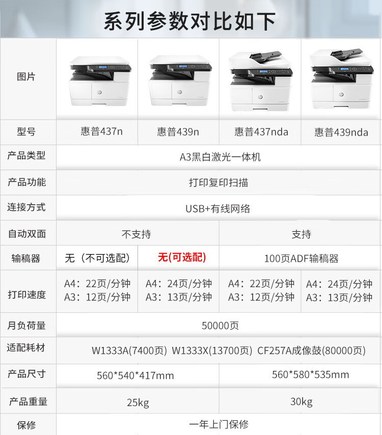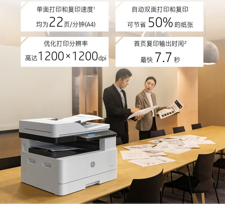 惠普(HP) 打印机 a3a4黑白激光复印扫描一体机 复印机办公 437dn标配 自动双面/有线网络 自营