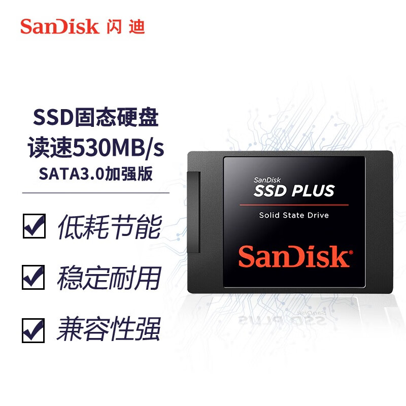 闪迪(SanDisk)240GB SSD固态硬盘SATA3.0接口台式机笔记本DIY稳定兼容 加强版-电脑升级优选|西部数据出品 自营