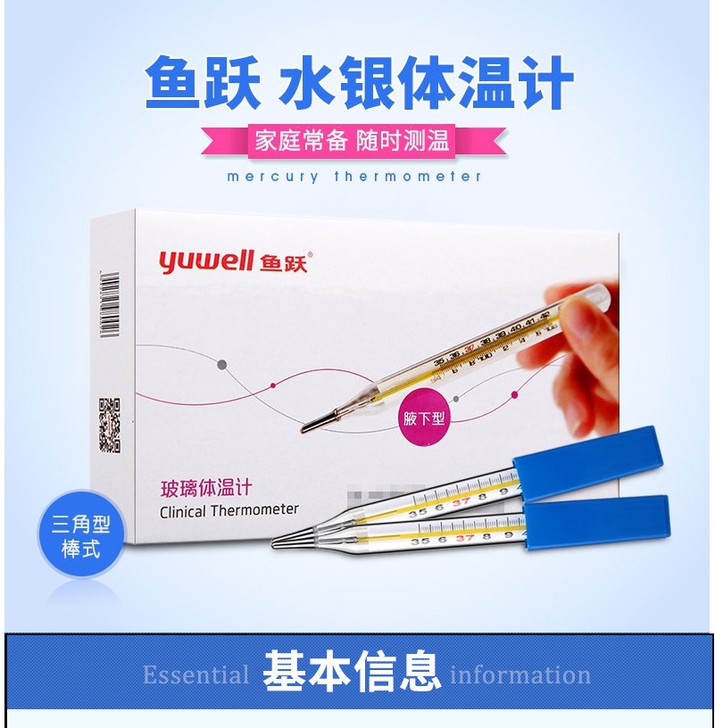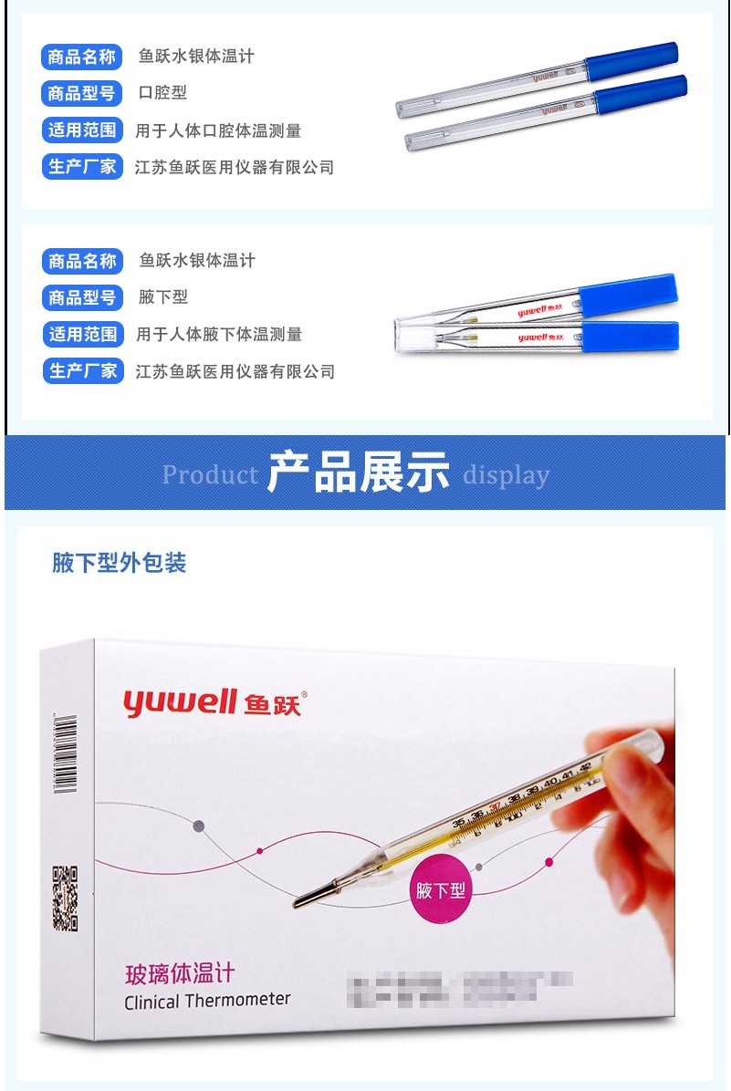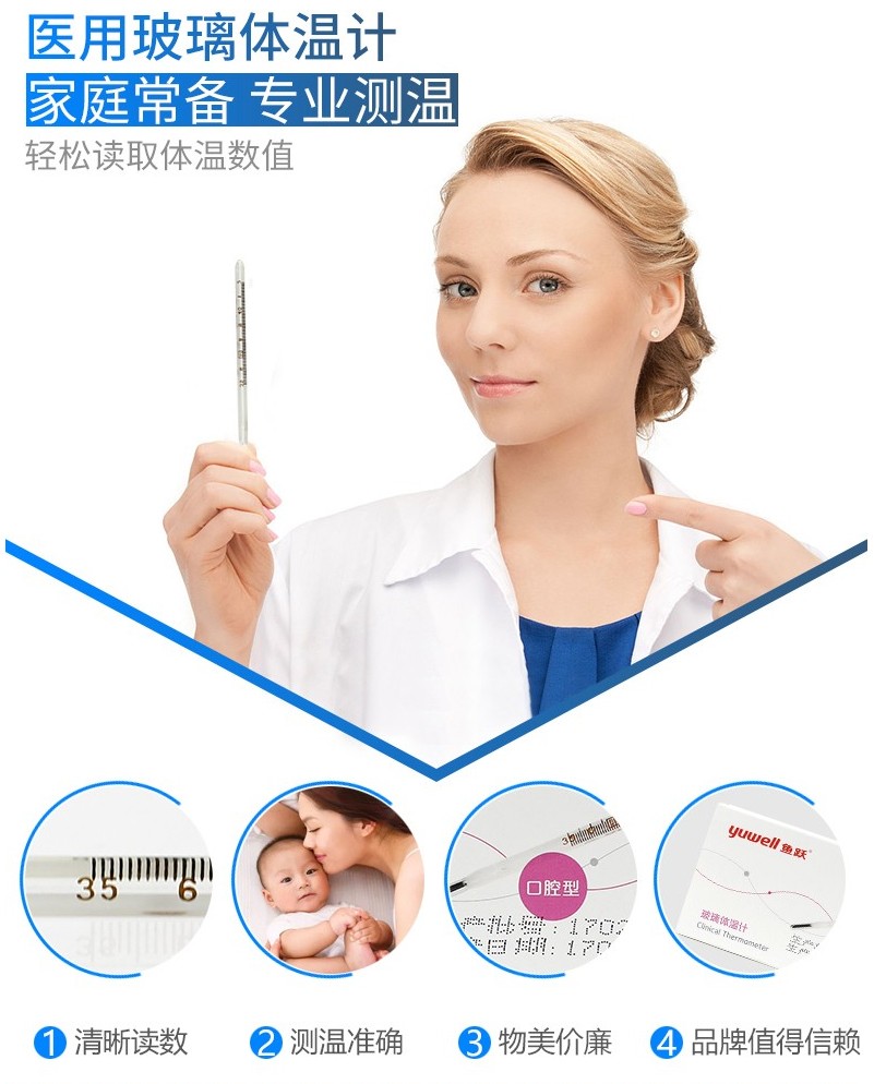鱼跃(Yuwell) 大号水银体温计家用成人宝宝儿童婴儿玻璃大刻度腋下温度计 体温表 大号腋下型1支装 自营
