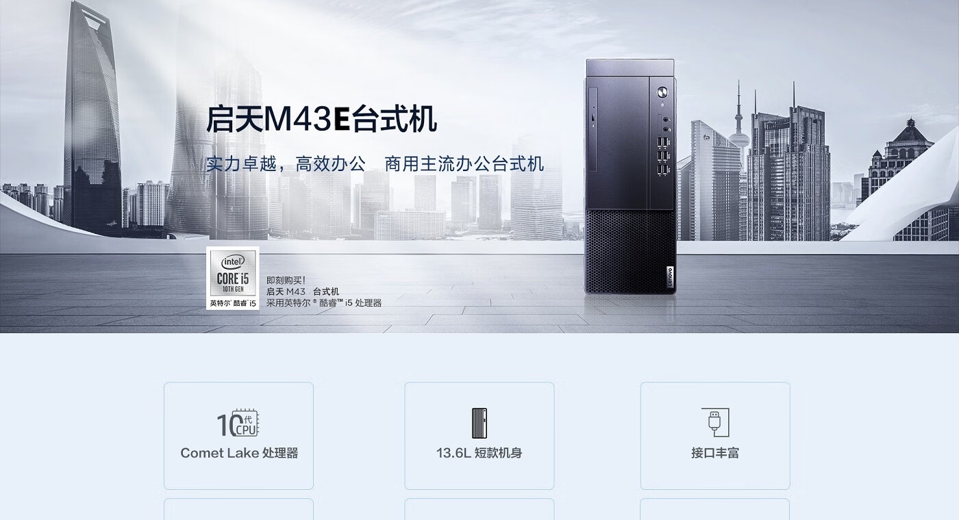 联想(Lenovo)启天M43E 酷睿i3-10105/4G/1TB/集显/正版Windows/顶置提手/高能效ES电源/19.5英寸 自营