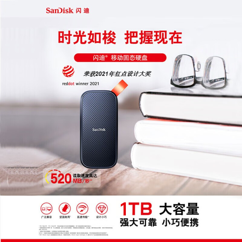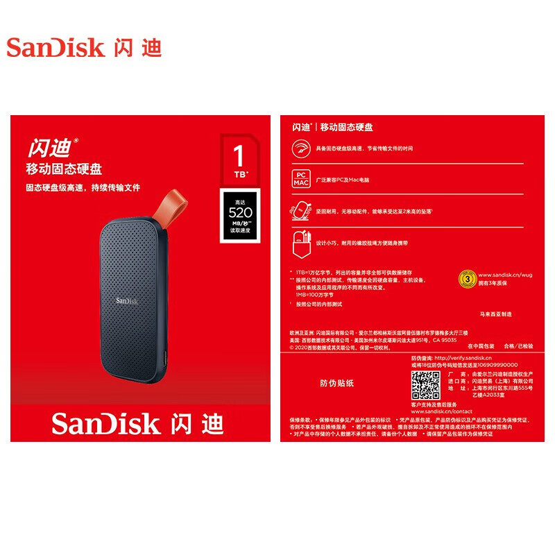 闪迪(SanDisk)1TB Type-c USB3.2 移动固态硬盘(PSSD)E30高速 移动ssd 传输速度520MB/s轻薄便携 2米防摔 自营