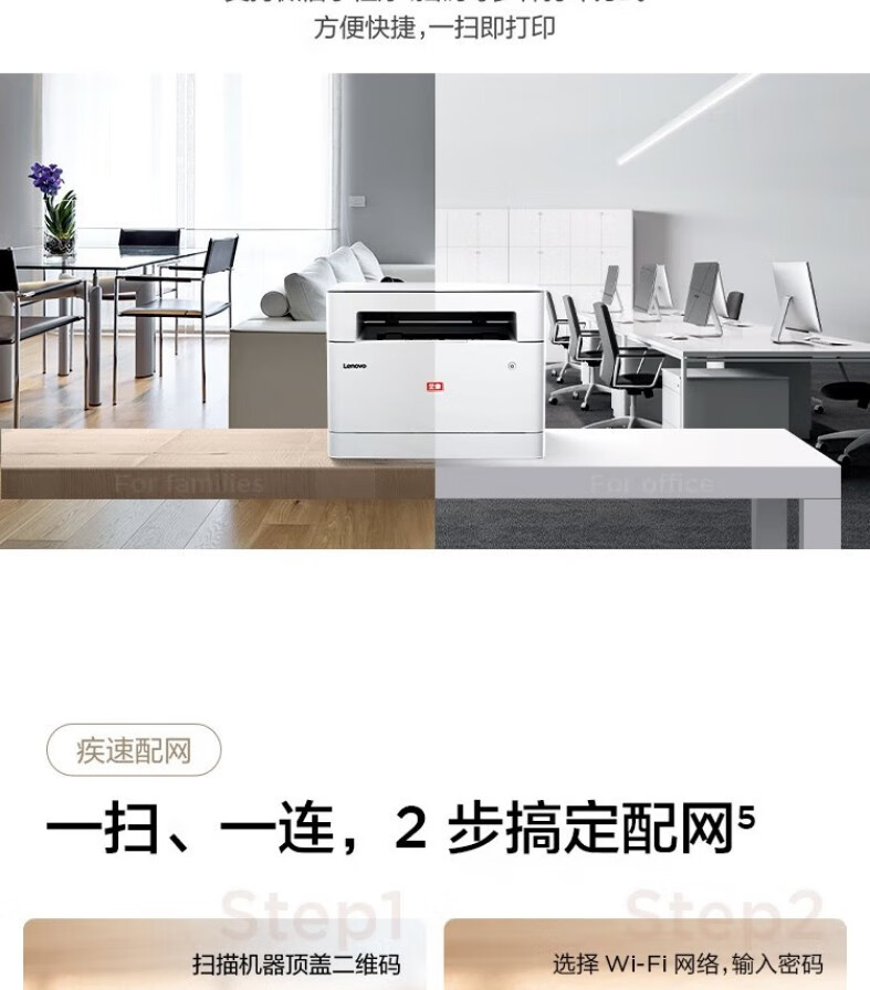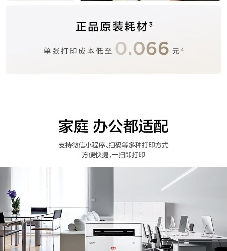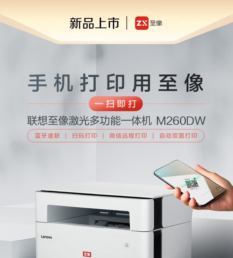联想(Lenovo) M260DW黑白激光一体打印机 (打印 复印 扫描) 自动双面打印 M260DW打印复印扫描多功能一体 自营