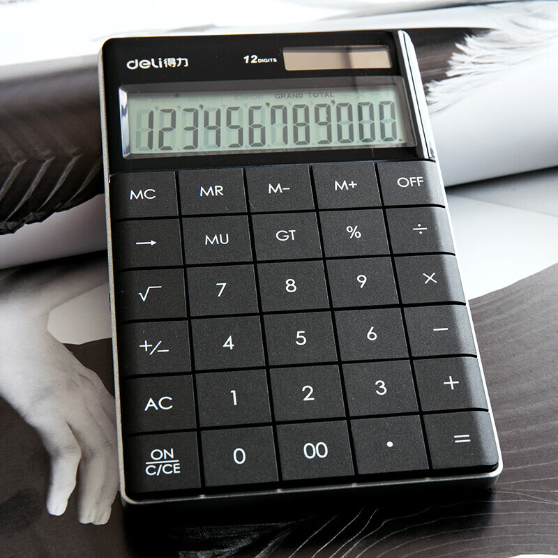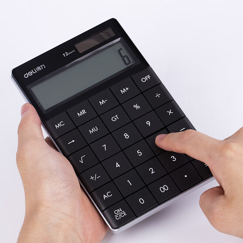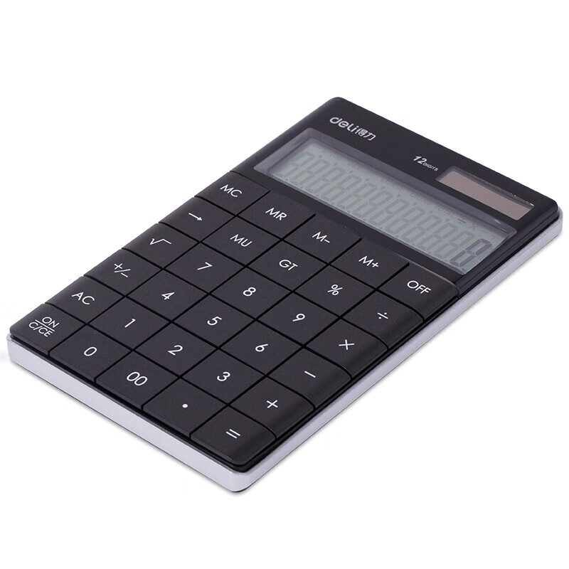 得力(deli)1589P双电源时尚计算器 轻薄机身平板按键桌面计算机 办公用品 黑色 自营