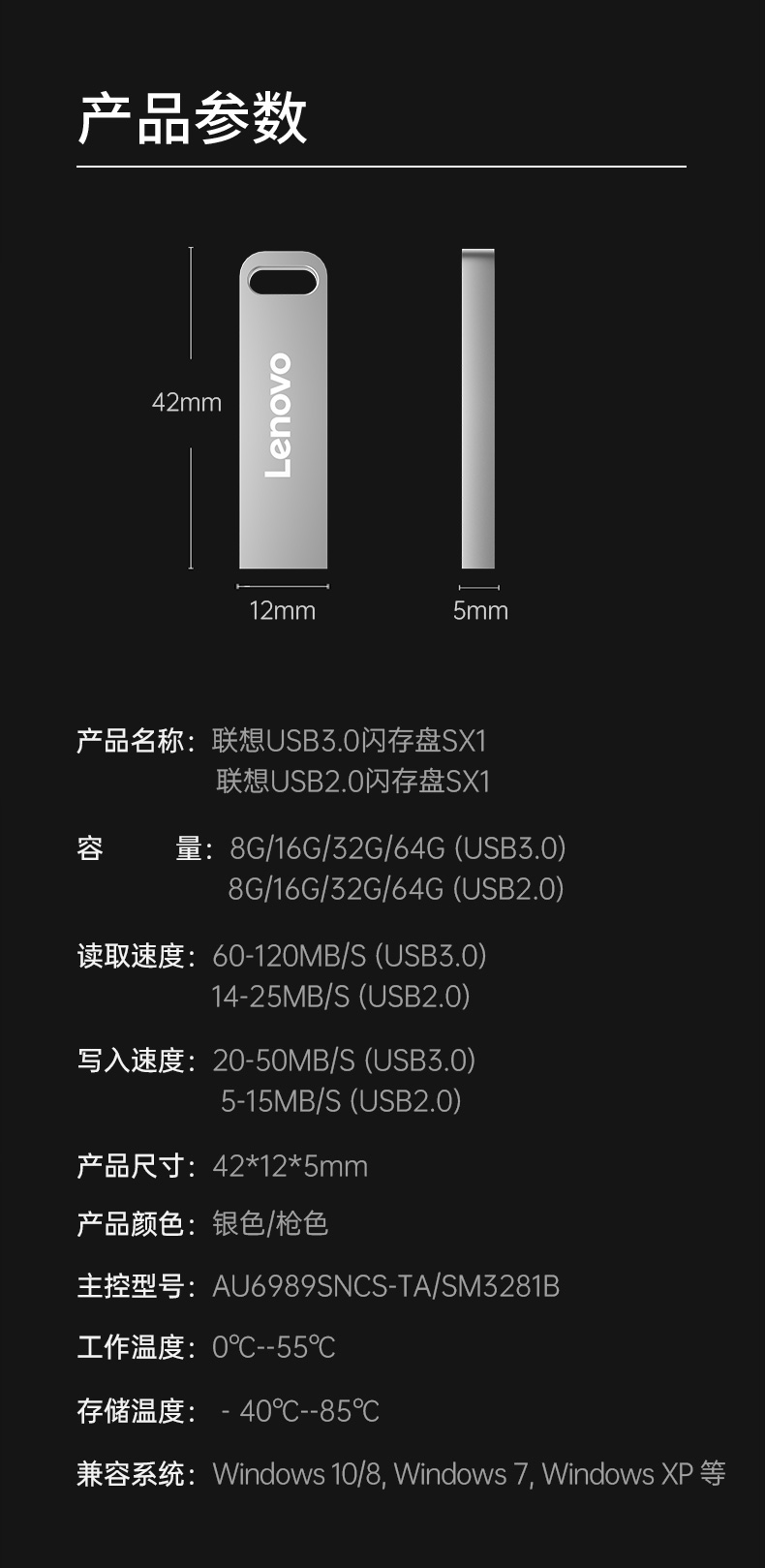 联想(Lenovo) U盘优盘 USB2.0速芯SX1系列U盘闪存U盘银色黑色 星光银 USB3.1【64GB】 自营