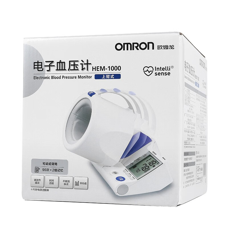 欧姆龙(OMRON)血压计电子血压仪家用仪器量血压器上臂式精准智能加压测量医用级血压表 HEM-1000型诊所自动臂筒式一体式 自营