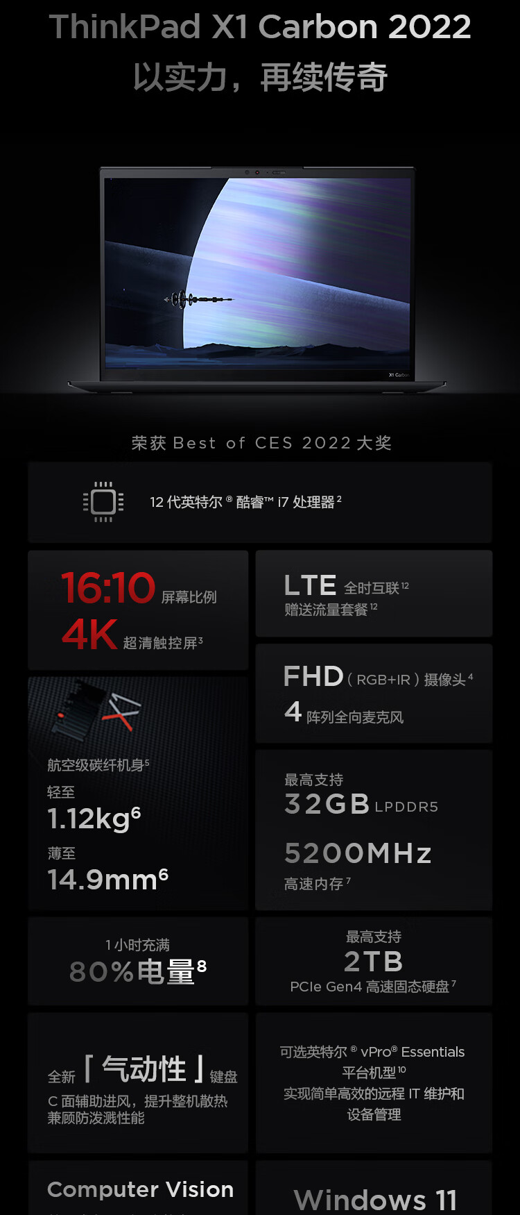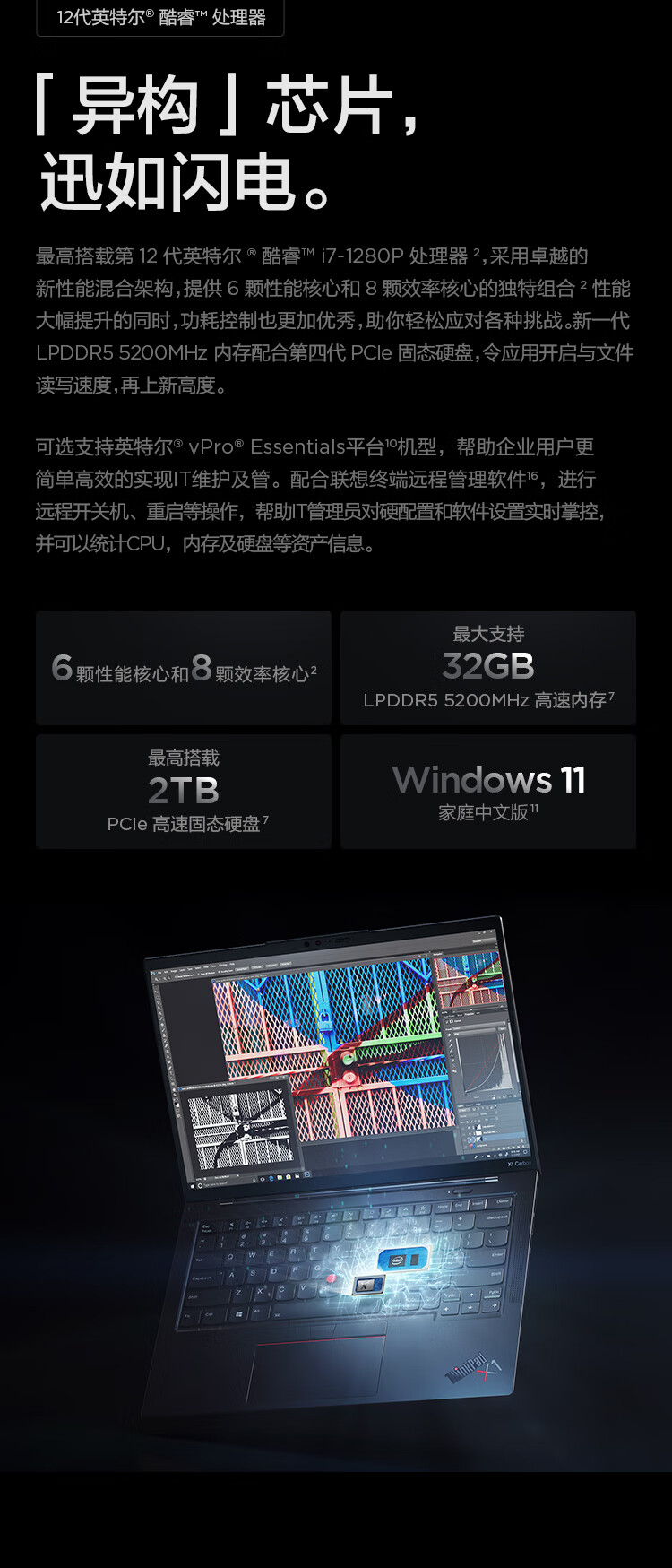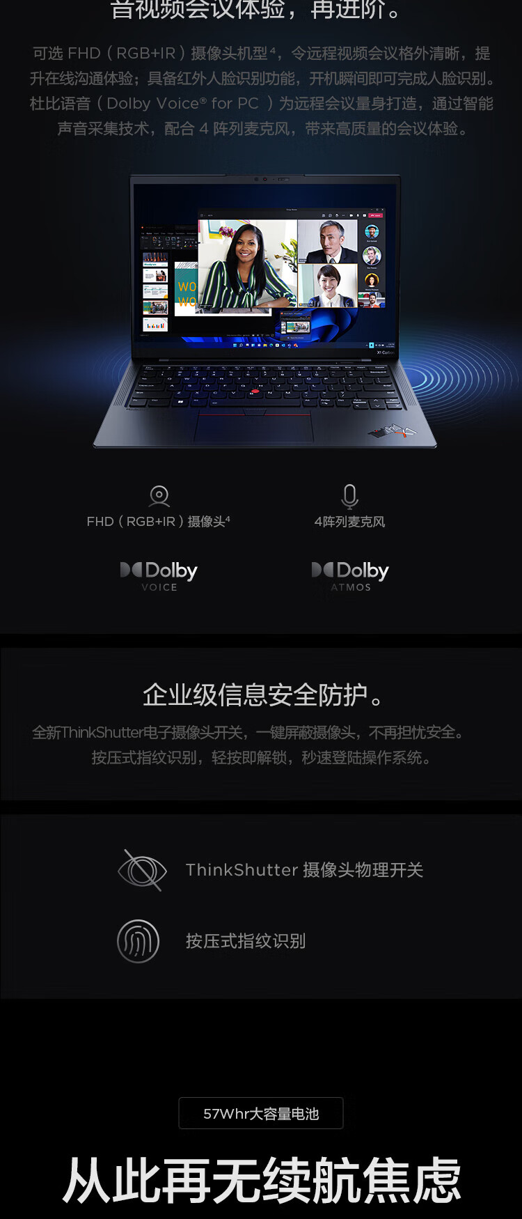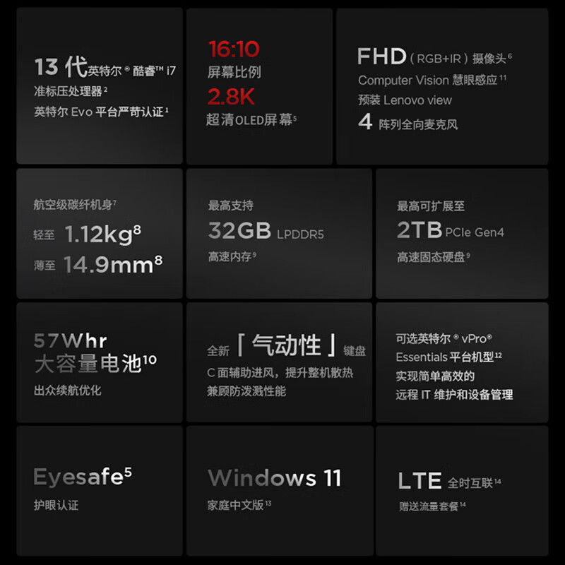 ThinkPad联想笔记本电脑 X1 Carbon 2023酷睿14英寸i7高端轻薄本商务办公本ibm设计游戏手提本 i7-1360P 2.2K 32G运行 1T PCle固态 高配版 自营
