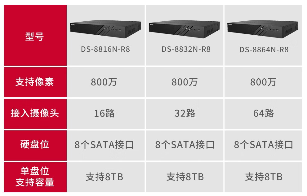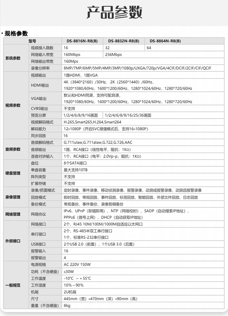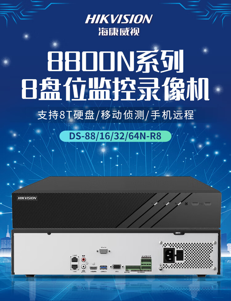 海康威视(HIKVISION)网络监控硬盘录像机NVR主机8盘位支持4K高清多路回放 DS-8864N-R8(64路/8盘位) 自营