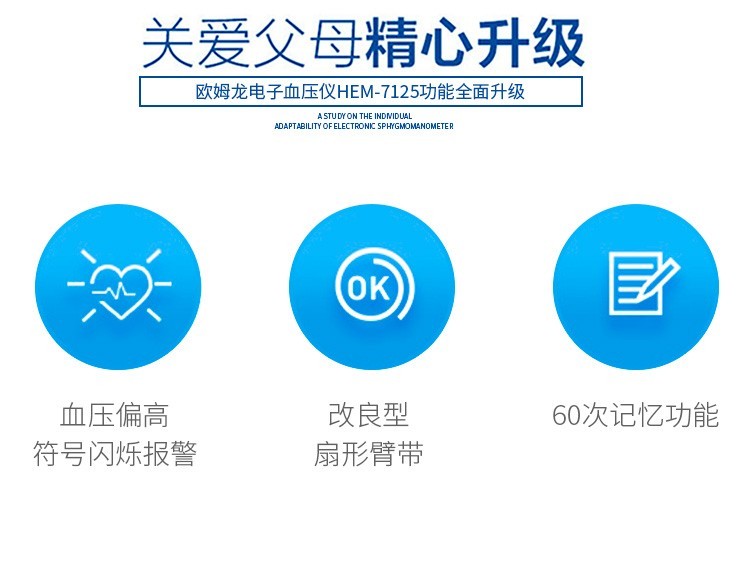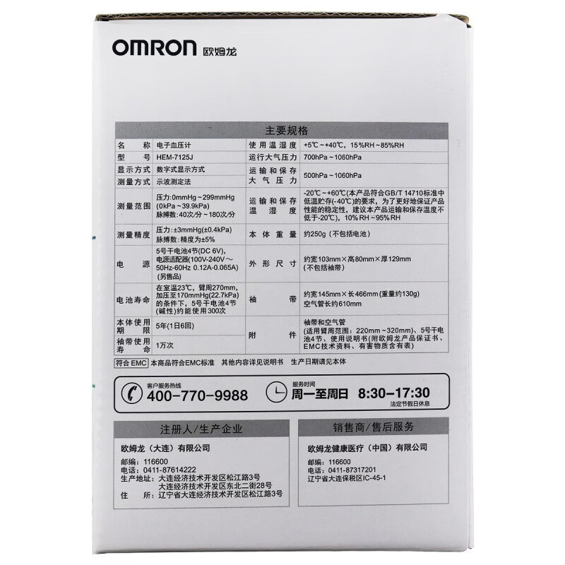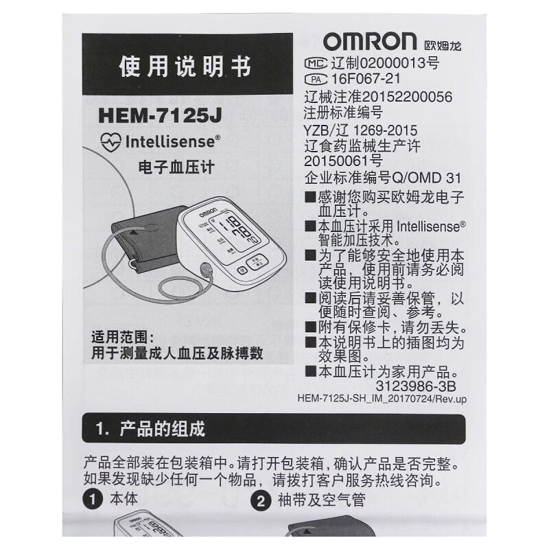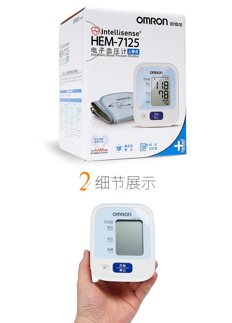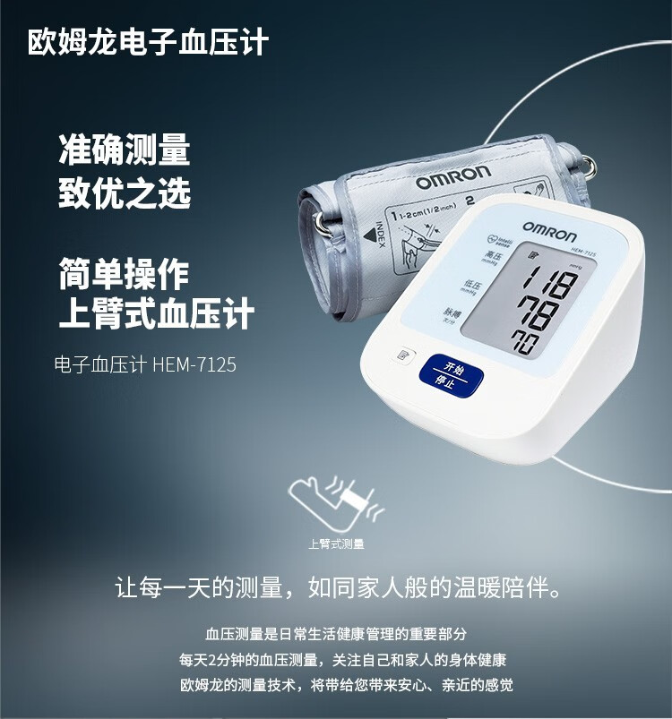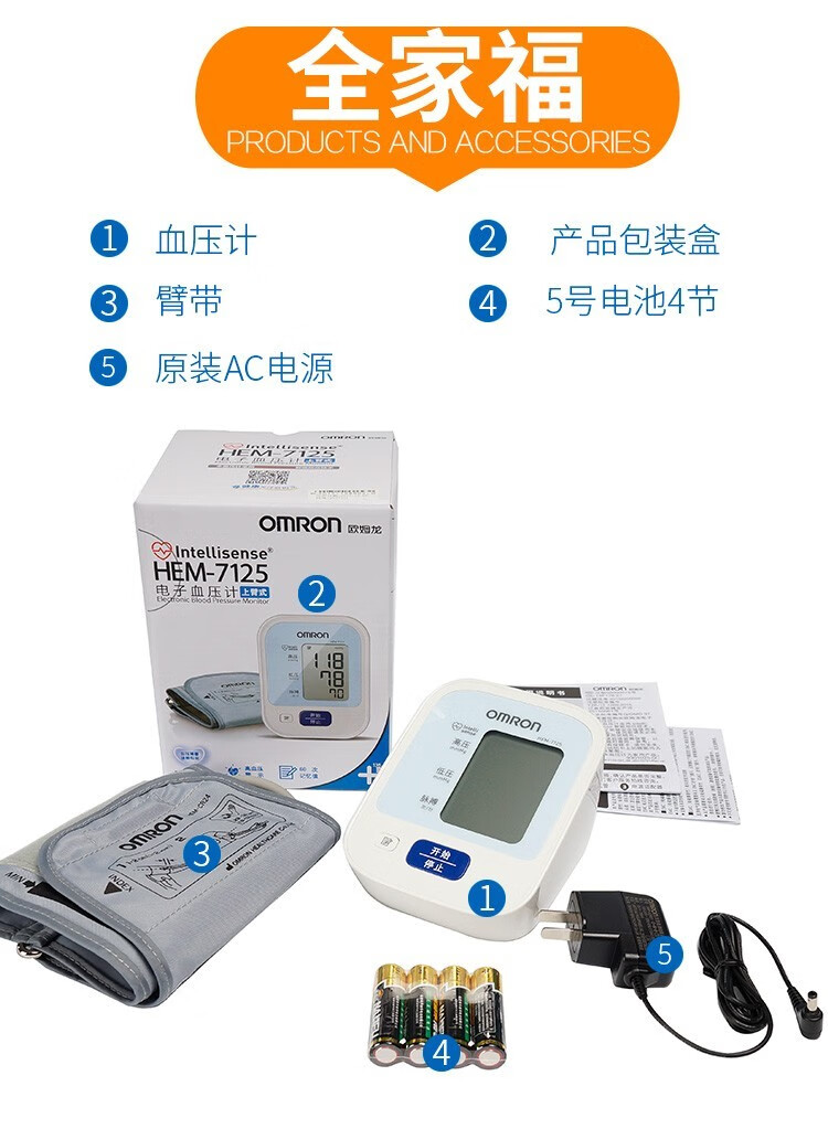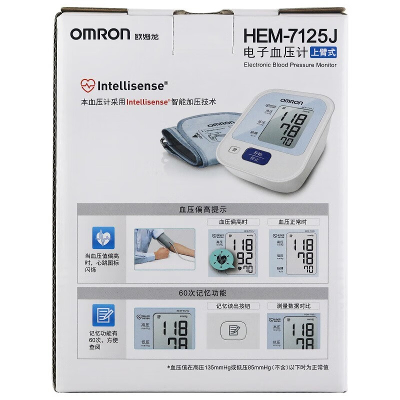 欧姆龙(OMRON)血压计HEM-7125电子血压仪家用测血压仪器高血压测量仪医用 升级版7125j+原装电池 自营