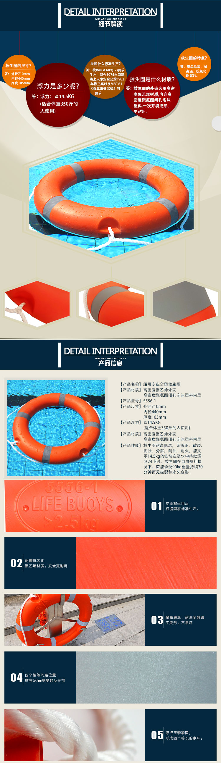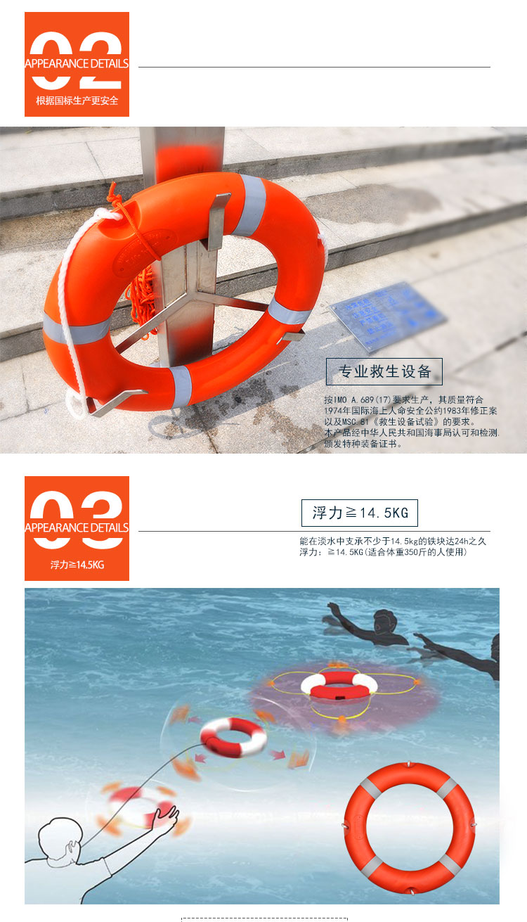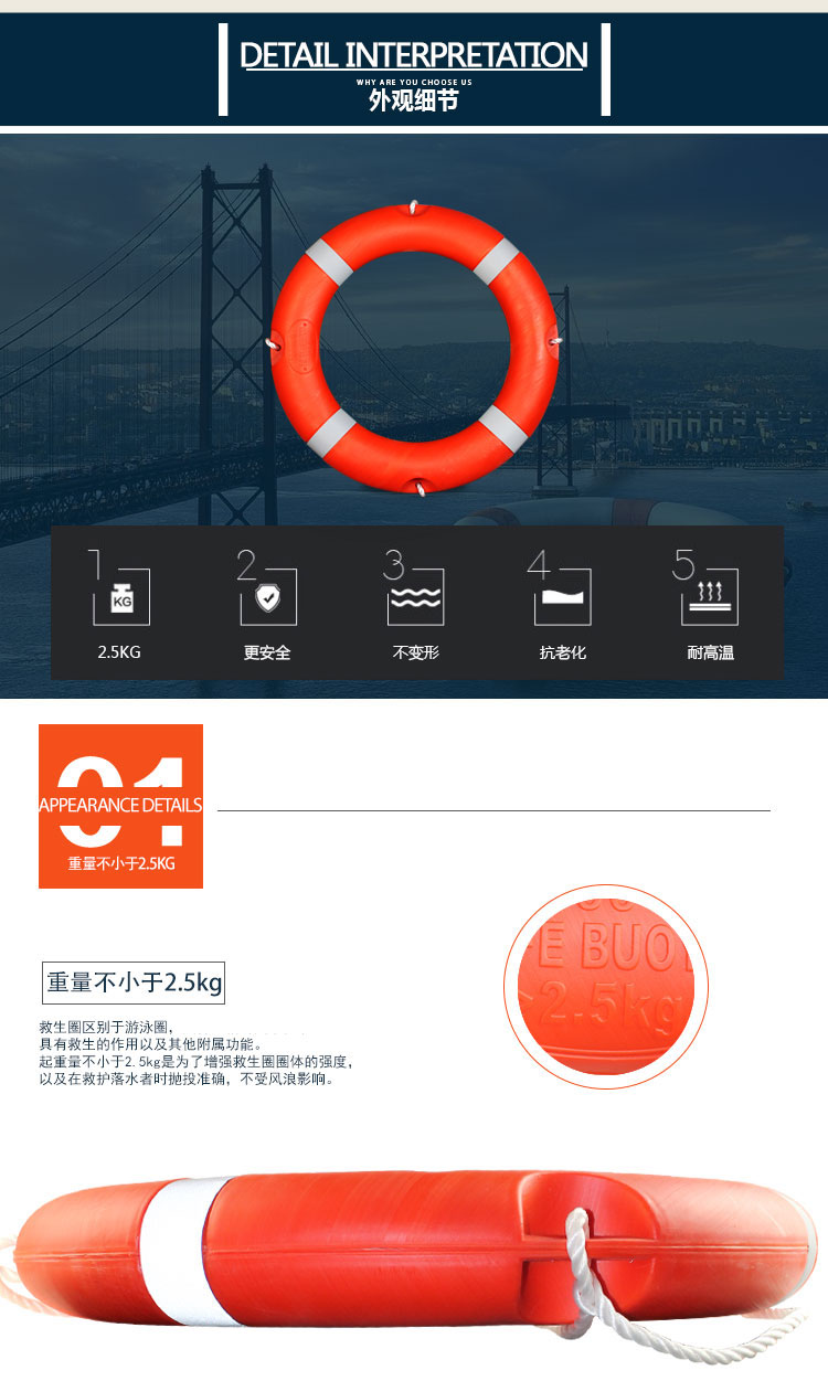 谋福 5556 国标救生圈 全塑成人救生圈 救生浮圈 加厚救生圈(救生设备标准款救生圈) 自营