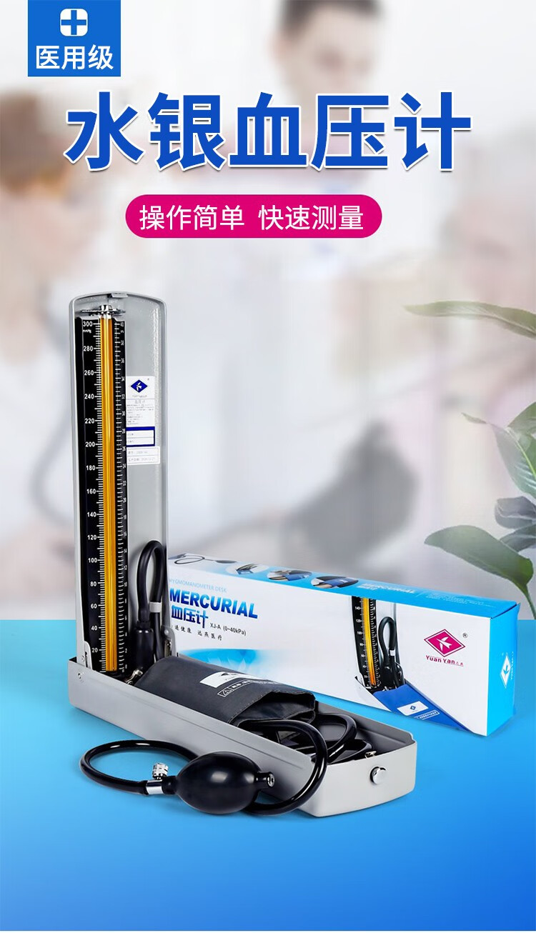 远燕 水银血压计家用台式水银柱血压仪手动测量血压 医用血压检测 水银血压仪老式传统台式血压表 水银血压计1台 自营